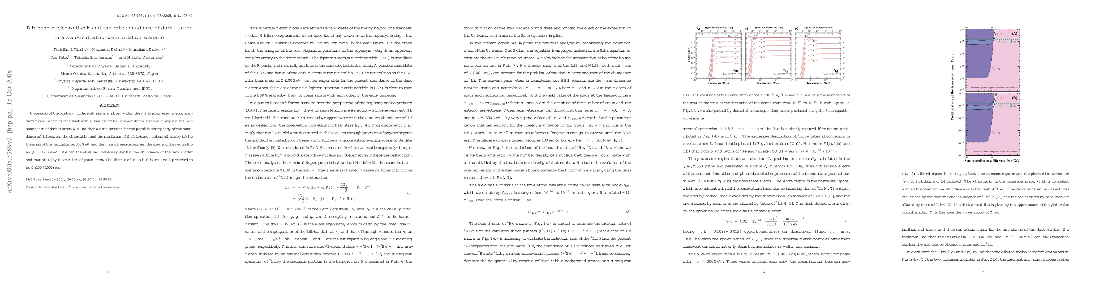This paper explores a Minimal Supersymmetric Standard Model scenario where stau-neutralino coannihilation explains the relic abundance of dark matter and addresses the discrepancy in $\mathrm{^{7}Li}$ abundance in Big-Bang Nucleosynthesis. The study finds that a neutralino mass of $300 \mathrm{GeV}$ and a mass difference of $(100 -- 120) MeV$ between stau and neutralino can resolve these issues, predicting staus' lifetimes of $O(100 -- 1000) sec$.
