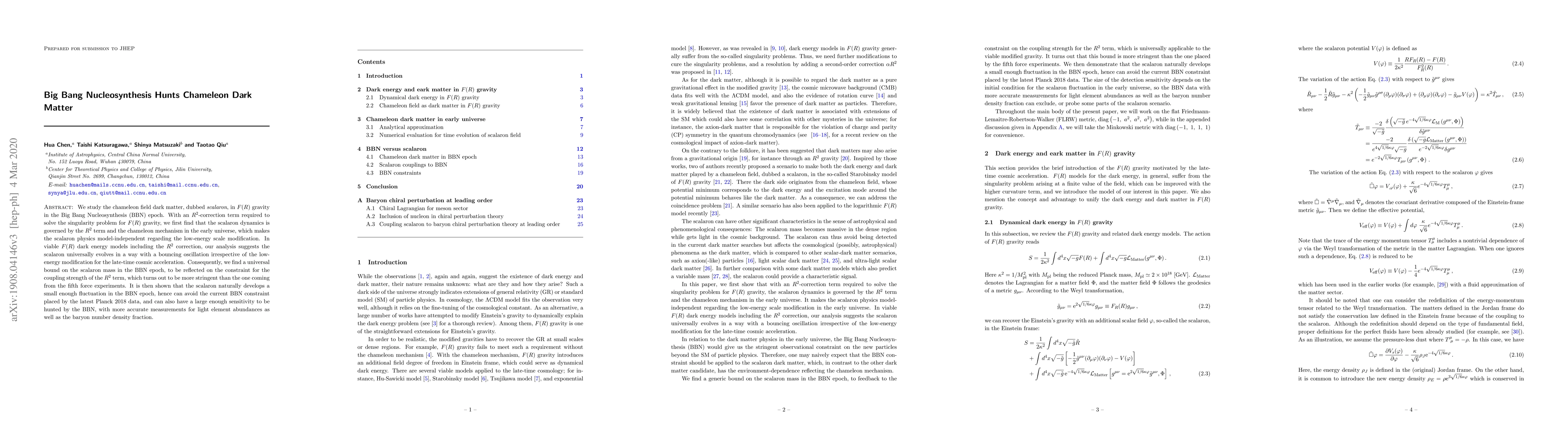 Researchers studied the chameleon dark matter in Big Bang Nucleosynthesis, finding a universal bound on its mass and suggesting it can avoid current constraints while being detectable through light element abundances.