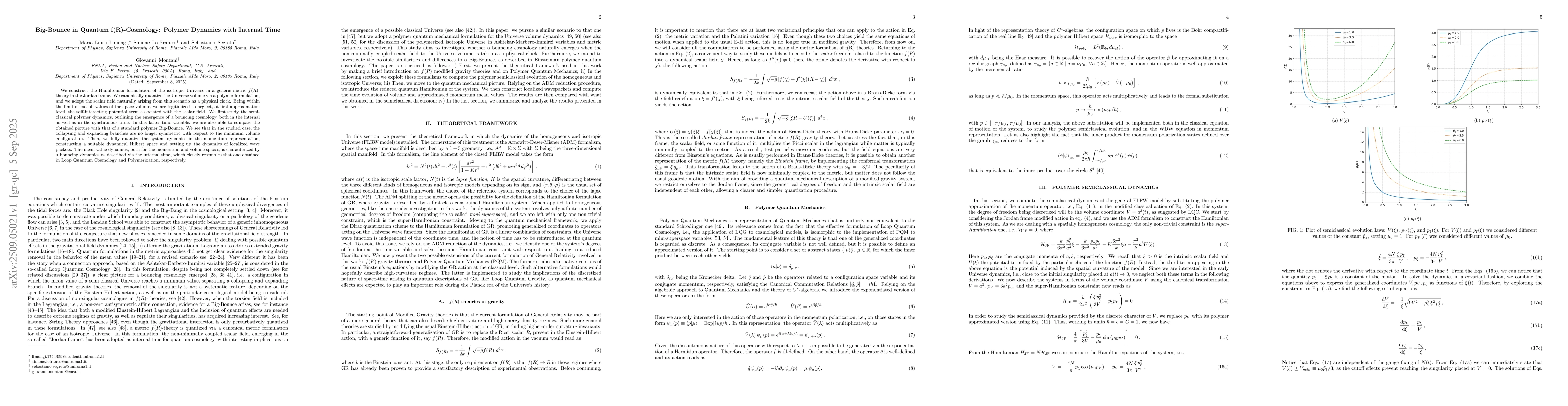 We construct the Hamiltonian formulation of the isotropic Universe in a generic metric f(R)-theory in the Jordan frame. We canonically quantize the Universe volume via a polymer formulation, and we adopt the scalar field naturally arising from this scenario as a physical clock. Being within the limit of cut-off values of the space volume, we are legitimized to neglect, at first approximation level, the self-interacting potential term associated with the scalar field. We first study the semi-classical polymer dynamics, outlining the emergence of a bouncing cosmology, both in the internal as well as in the synchronous time. In this latter time variable, we are also able to compare the obtained picture with that of a standard polymer Big-Bounce. We see that in the studied case, the collapsing and expanding branches are no longer symmetric with respect to the minimum volume configuration. Then, we fully quantize the system dynamics in the momentum representation, constructing a suitable dynamical Hilbert space and setting up the dynamics of localized wave packets. The mean value dynamics, both for the momentum and volume spaces, is characterized by a bouncing dynamics as described via the internal time, which closely resembles that one obtained in Loop Quantum Cosmology and Polymerization, respectively.