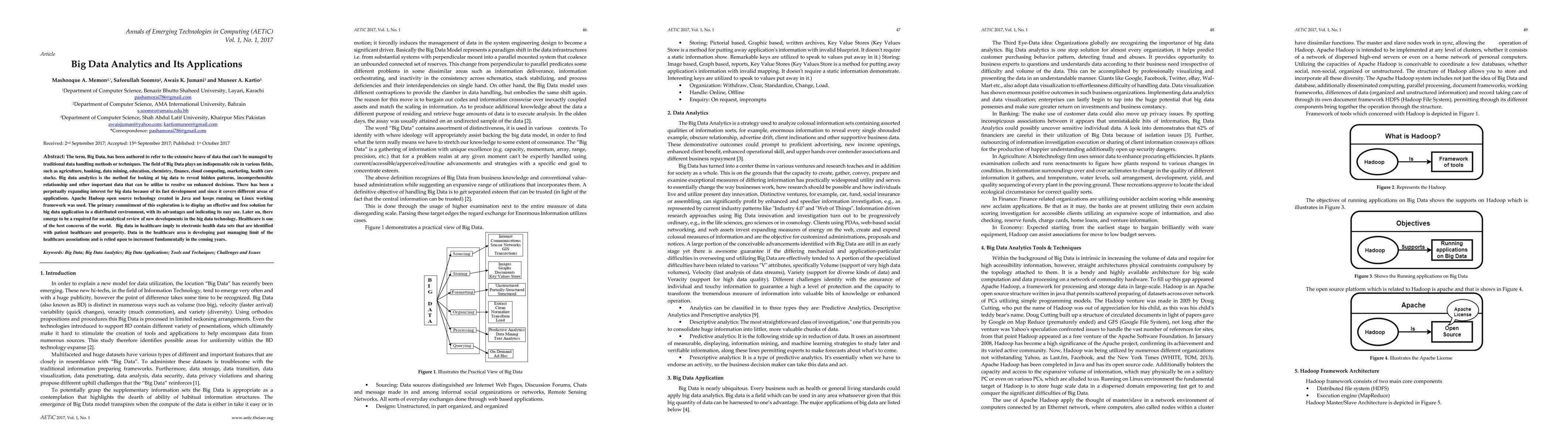 This paper explores the expansive realm of Big Data Analytics, emphasizing its applications across various fields like healthcare, finance, and marketing. It highlights the use of Apache Hadoop for managing big data in distributed environments, showcasing its benefits and ease of use, while also noting the growing importance of big data in healthcare due to its rapid development and increasing volume.