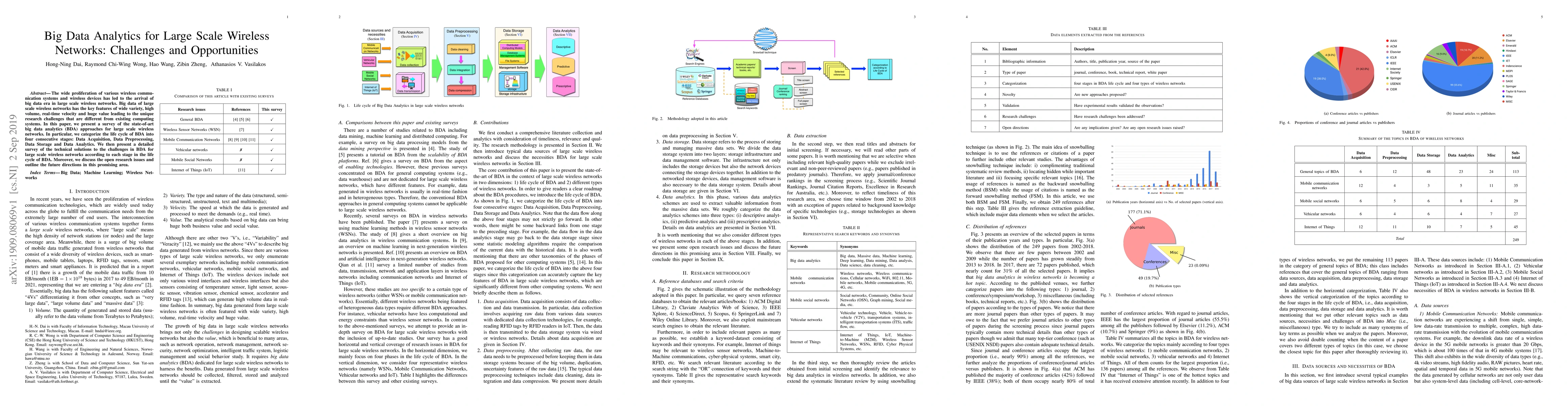 This paper surveys big data analytics (BDA) approaches for large-scale wireless networks, categorizing the BDA life cycle into four stages: Data Acquisition, Data Preprocessing, Data Storage, and Data Analytics. It discusses technical solutions to challenges and outlines future research directions.