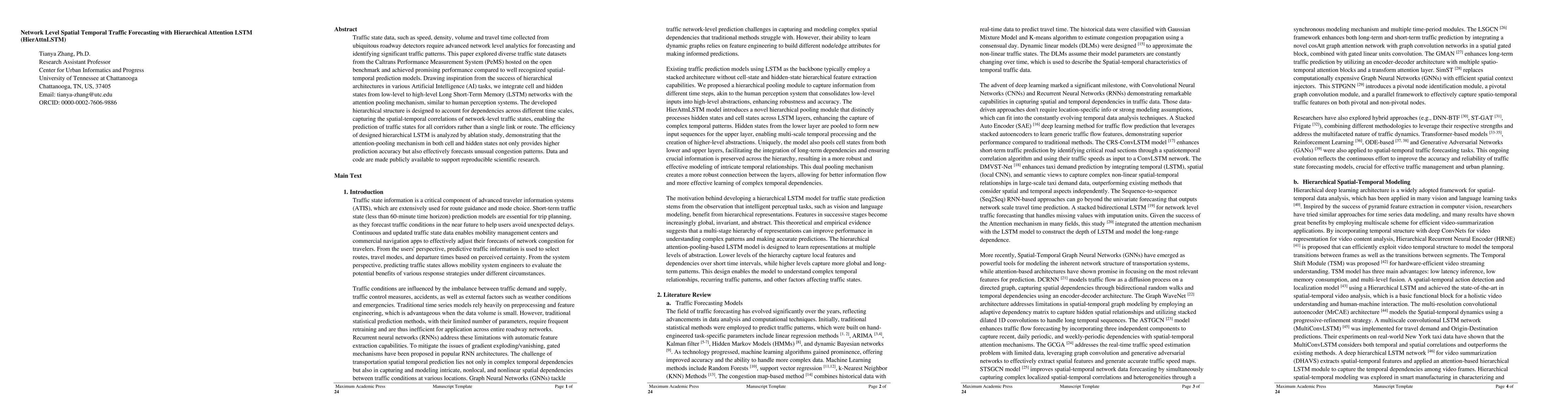 This paper proposes a Hierarchical LSTM model with Attention for short-term travel time prediction using big data analytics tools like Apache Spark and MXNet on a large-scale dataset from Caltrans PeMS. The model outperforms traditional methods by capturing spatial-temporal correlations and forecasting unusual congestion effectively.