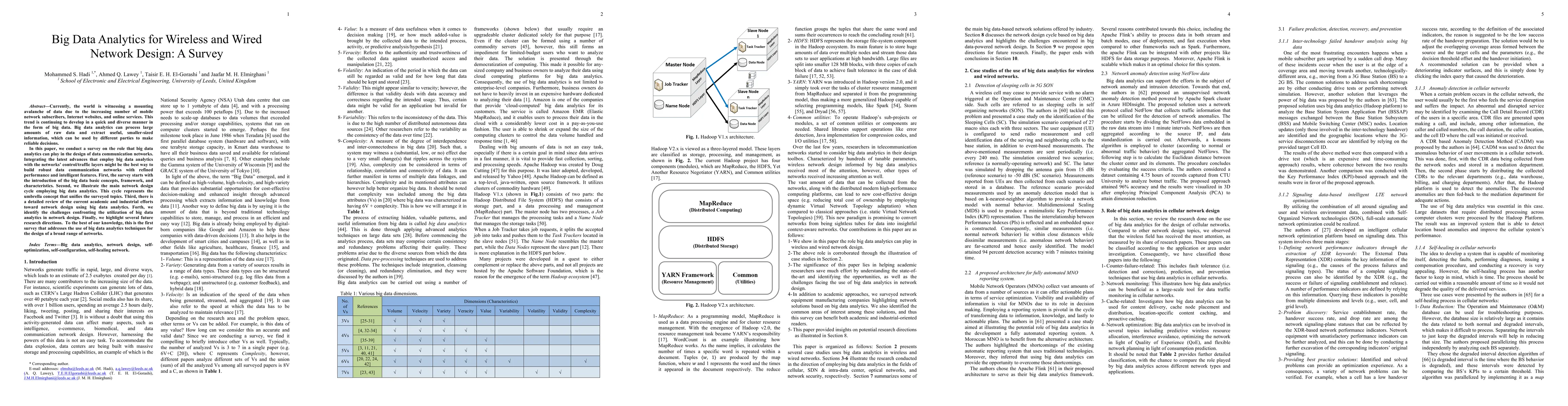 This paper surveys the application of big data analytics in designing both wireless and wired networks, highlighting its role in processing large datasets to extract useful information for network design. It reviews current efforts, challenges, and future research directions in integrating big data analytics into network control and traffic layers for enhanced performance.