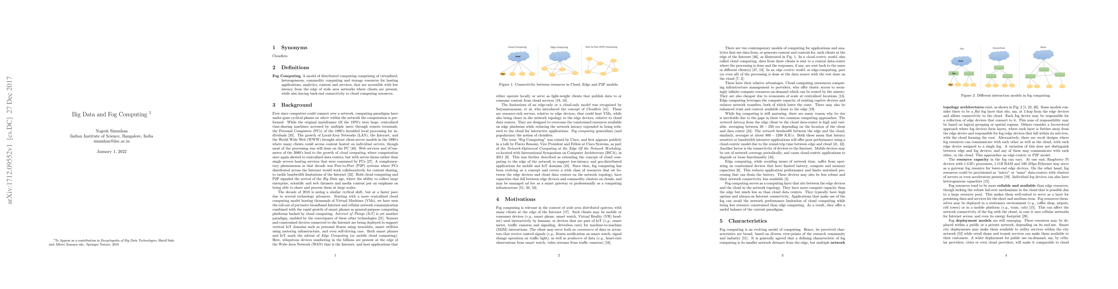 The paper explores fog computing in the context of big data, discussing its role, applications, and challenges.