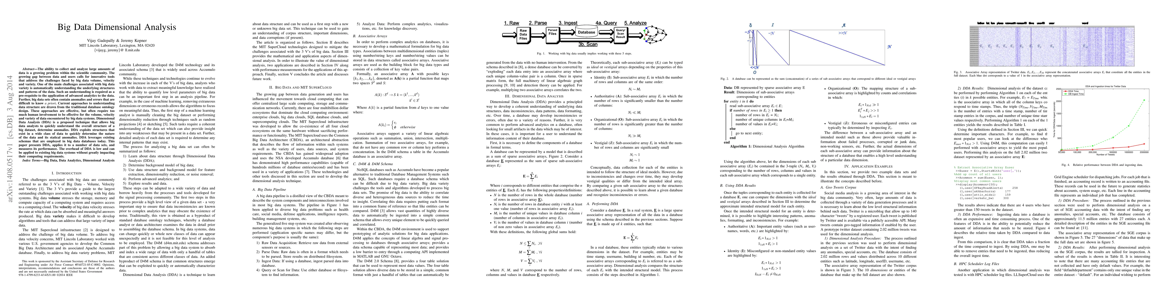 This paper introduces Dimensional Data Analysis (DDA), a novel technique designed to quickly understand the structure and detect anomalies in large datasets, addressing the challenges of big data's volume, velocity, and variety. DDA leverages existing schemas and has low overhead, making it applicable to current big data systems with minimal impact.