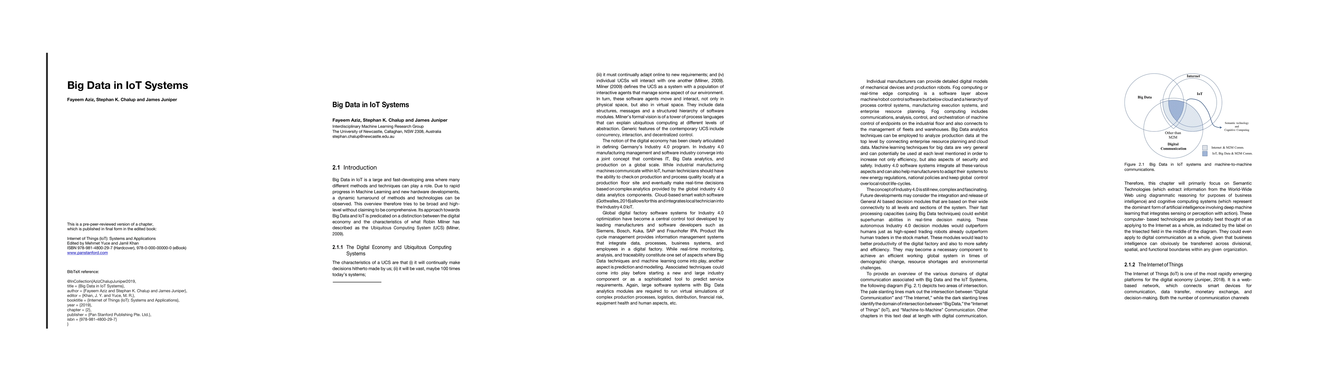 Big Data in IoT is a large and fast-developing area where many different methods and techniques can play a role. Due to rapid progress in Machine Learning and new hardware developments, a dynamic turnaround of methods and technologies can be observed. This overview therefore tries to be broad and highlevel without claiming to be comprehensive. Its approach towards Big Data and IoT is predicated on a distinction between the digital economy and the characteristics of what Robin Milner has described as the Ubiquitous Computing System.