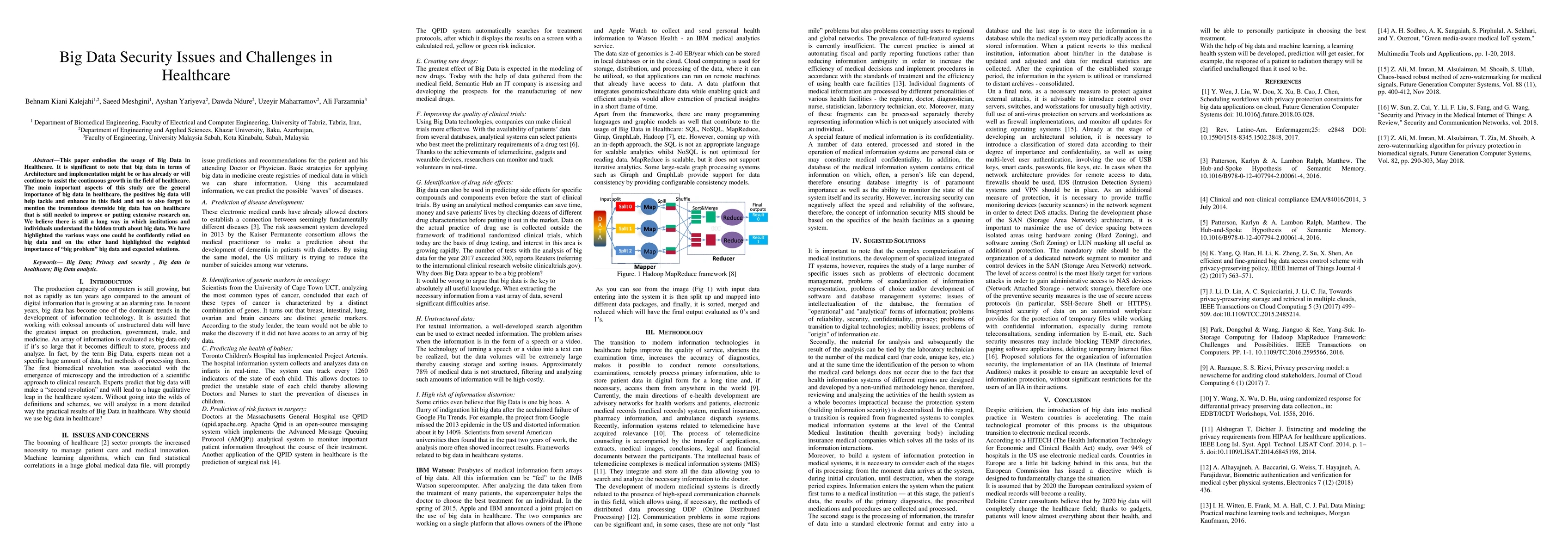 This paper explores the transformative potential of Big Data in healthcare, emphasizing its benefits and challenges. It underscores the need for extensive research to address the significant security issues and risks associated with Big Data in this field.