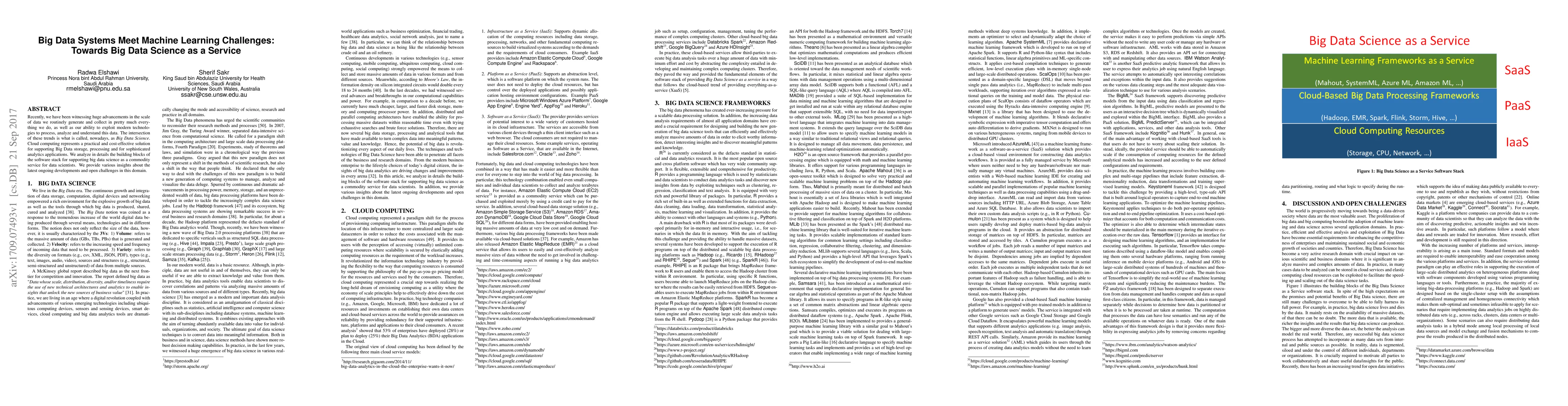 This paper explores the intersection of big data systems and machine learning, focusing on the potential of cloud computing to support big data science as a service. It examines the software stack components for delivering big data science and discusses current advancements and challenges.
