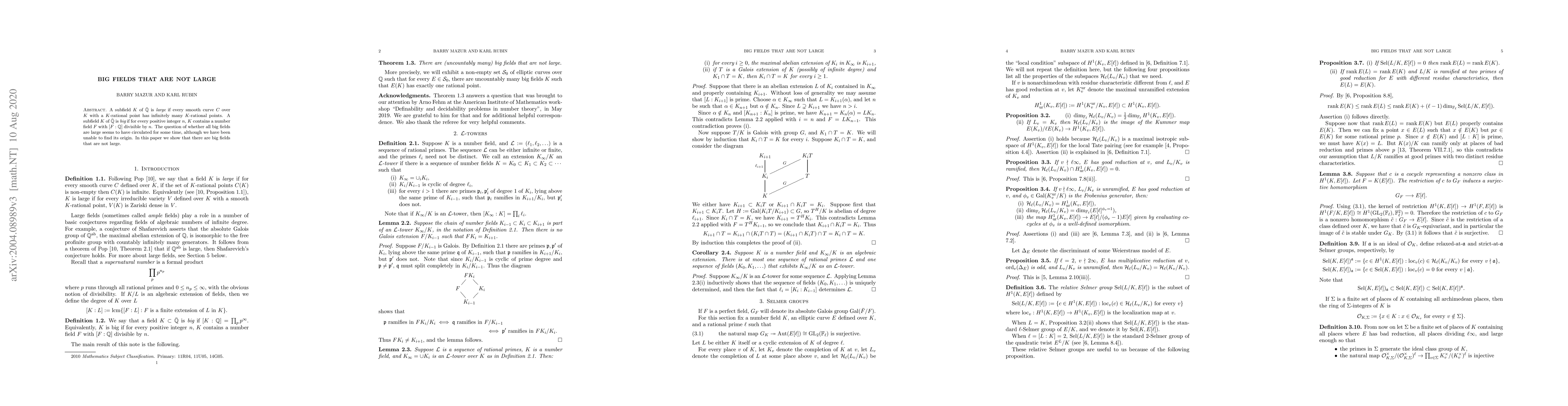 A subfield $K$ of $\bar{\mathbb{Q}}$ is $large$ if every smooth curve $C$ over $K$ with a rational point has infinitely many rational points. A subfield $K$ of $\bar{\mathbb{Q}}$ is $big$ if for every positive integer $n$, $K$ contains a number field $F$ with $[F:\mathbb{Q}]$ divisible by $n$. The question of whether all big fields are large seems to have circulated for some time, although we have been unable to find its origin. In this paper we show that there are big fields that are not large.