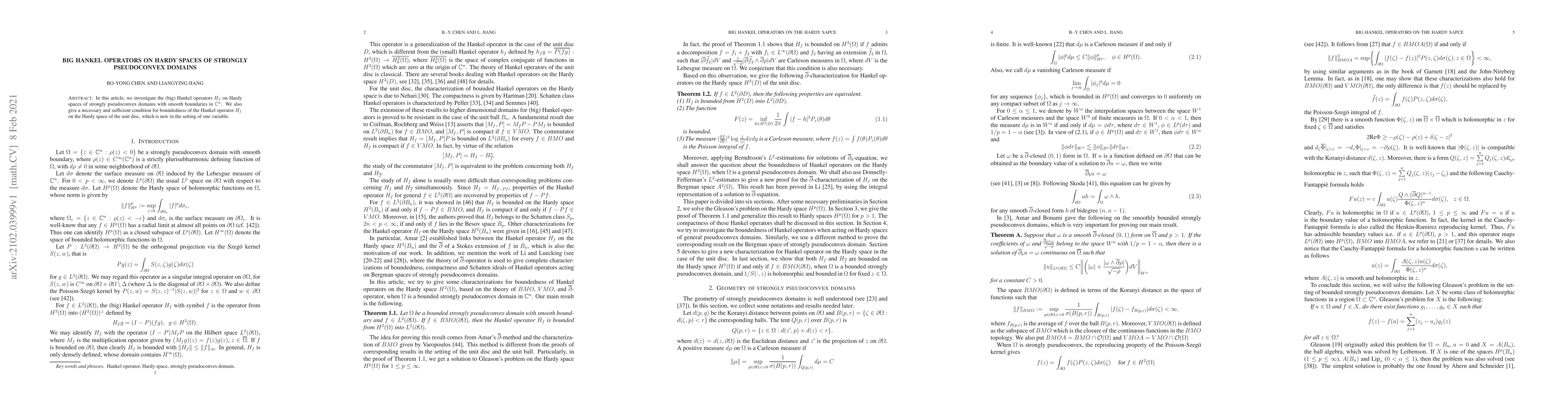 This paper studies big Hankel operators $H_f$ on Hardy spaces within strongly pseudoconvex domains in $\mathbb{C}^n$ and provides a new necessary and sufficient condition for the boundedness of $H_f$ on the Hardy space of the unit disc in one variable.