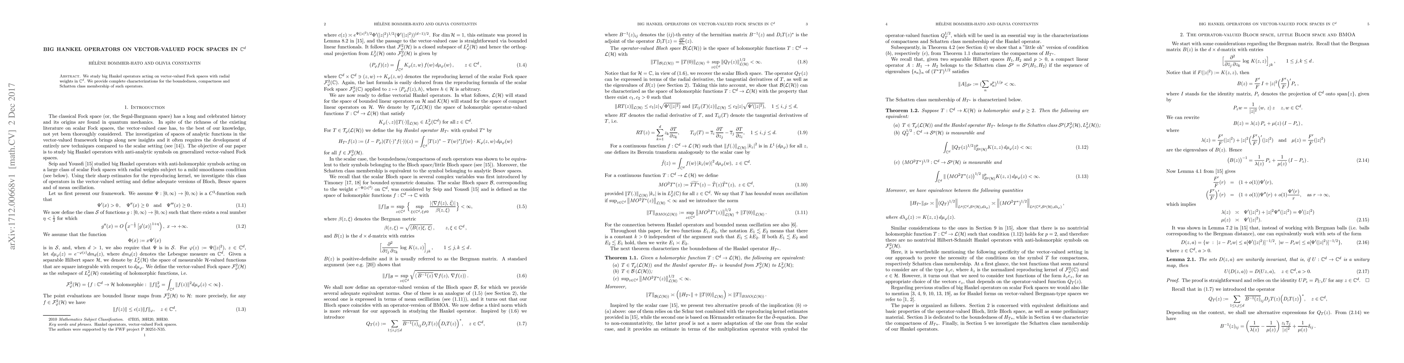 Researchers studied big Hankel operators on vector-valued Fock spaces in C^d, characterizing their boundedness, compactness, and Schatten class membership.