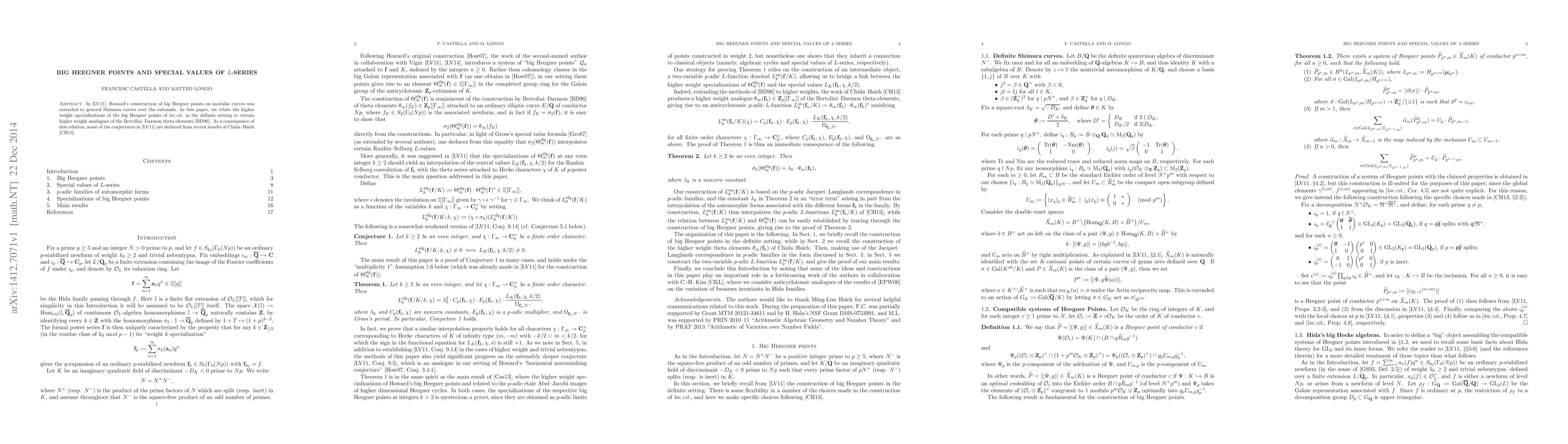 Researchers extend a construction of big Heegner points to general Shimura curves, relating them to higher weight analogues of Bertolini-Darmon theta elements, which deduces some conjectures from recent results.