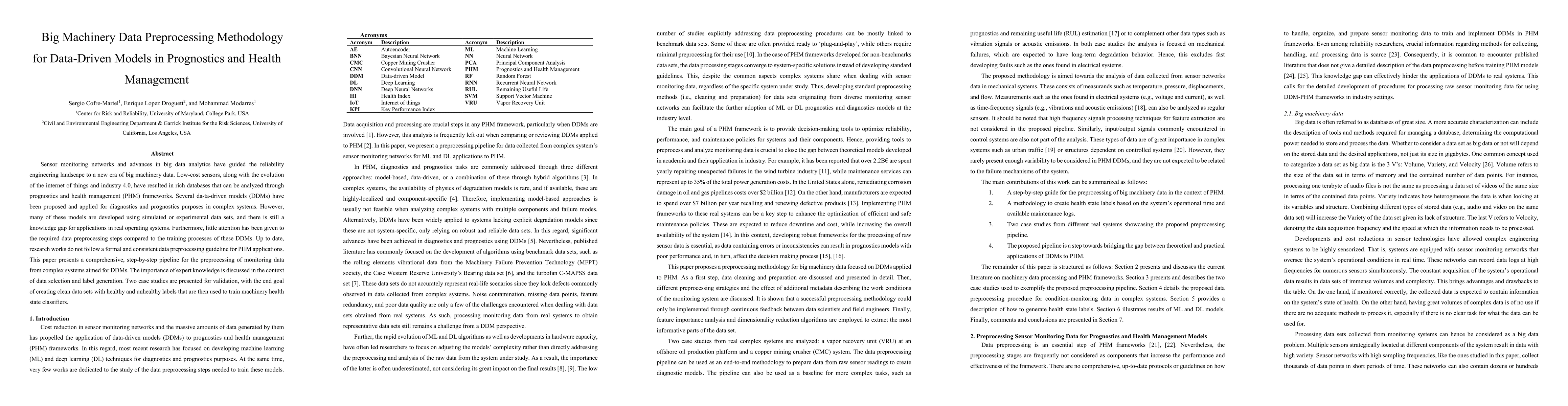A new data preprocessing methodology for big machinery data is presented to improve diagnostics and prognostics in complex systems using data-driven models.