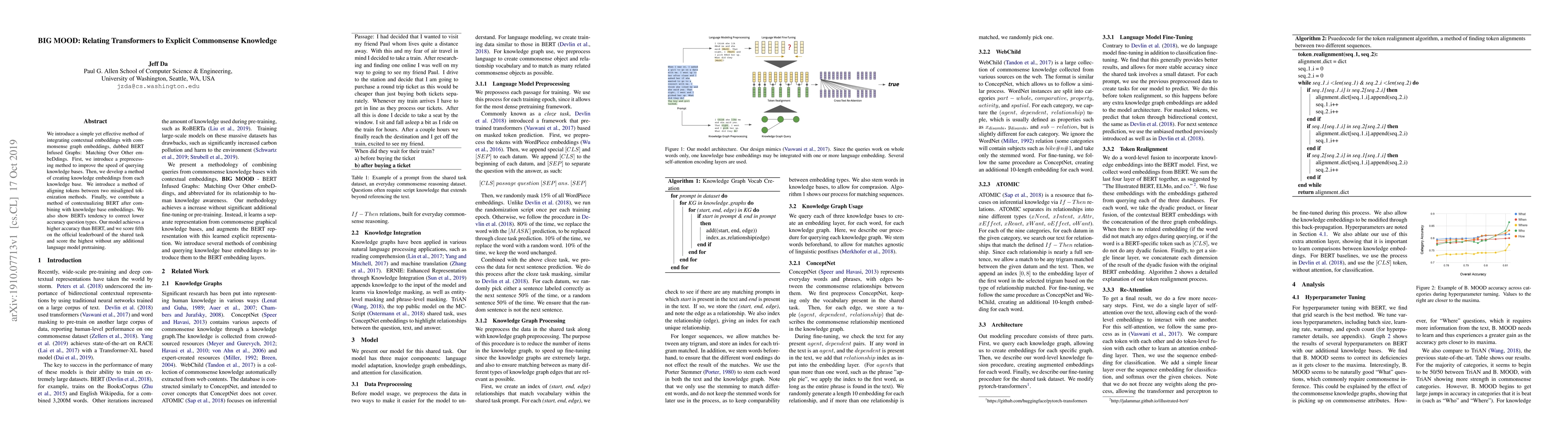 We introduce a simple yet effective method of integrating contextual embeddings with commonsense graph embeddings, dubbed BERT Infused Graphs: Matching Over Other embeDdings. First, we introduce a preprocessing method to improve the speed of querying knowledge bases. Then, we develop a method of creating knowledge embeddings from each knowledge base. We introduce a method of aligning tokens between two misaligned tokenization methods. Finally, we contribute a method of contextualizing BERT after combining with knowledge base embeddings. We also show BERTs tendency to correct lower accuracy question types. Our model achieves a higher accuracy than BERT, and we score fifth on the official leaderboard of the shared task and score the highest without any additional language model pretraining.