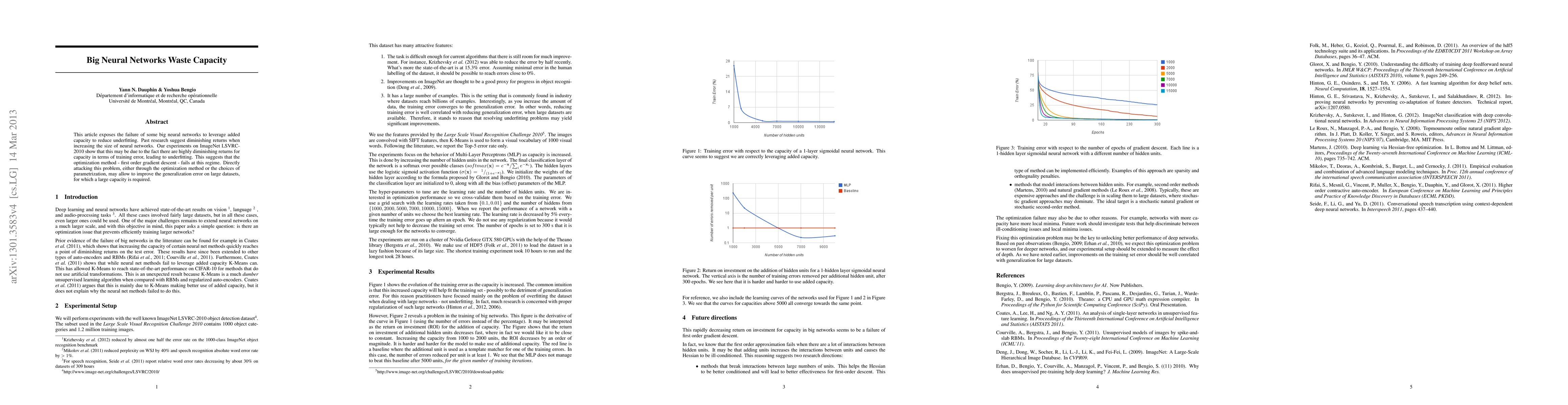 This article exposes the failure of some big neural networks to leverage added capacity to reduce underfitting. Past research suggest diminishing returns when increasing the size of neural networks. Our experiments on ImageNet LSVRC-2010 show that this may be due to the fact there are highly diminishing returns for capacity in terms of training error, leading to underfitting. This suggests that the optimization method - first order gradient descent - fails at this regime. Directly attacking this problem, either through the optimization method or the choices of parametrization, may allow to improve the generalization error on large datasets, for which a large capacity is required.
