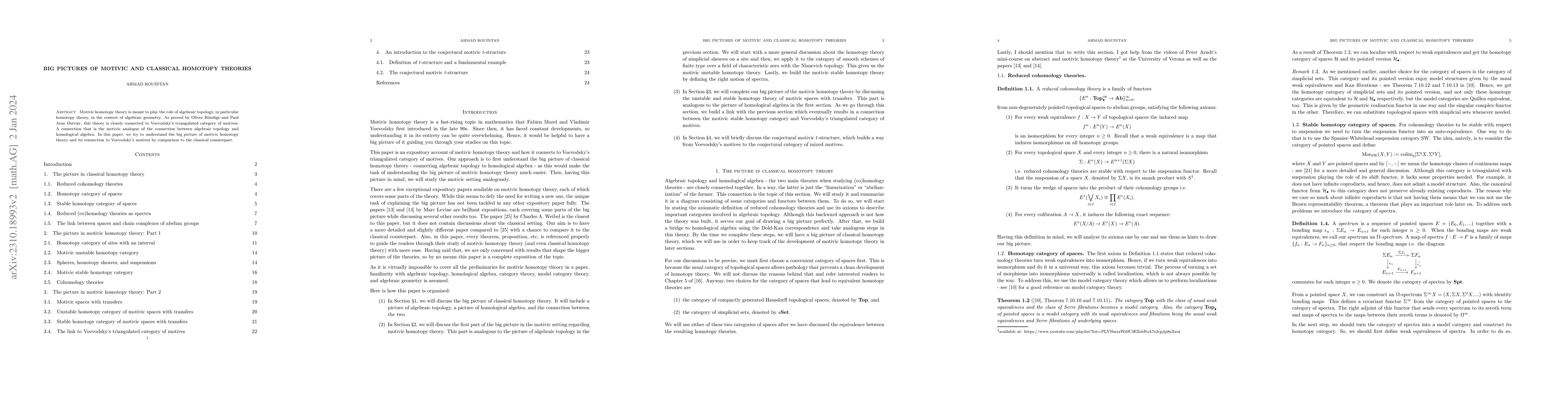 This paper explores motivic homotopy theory's role in algebraic geometry, comparing it to classical homotopy theory and emphasizing its connection to Voevodsky's triangulated category of motives. It aims to elucidate the broader picture of motivic homotopy theory through this comparative lens.