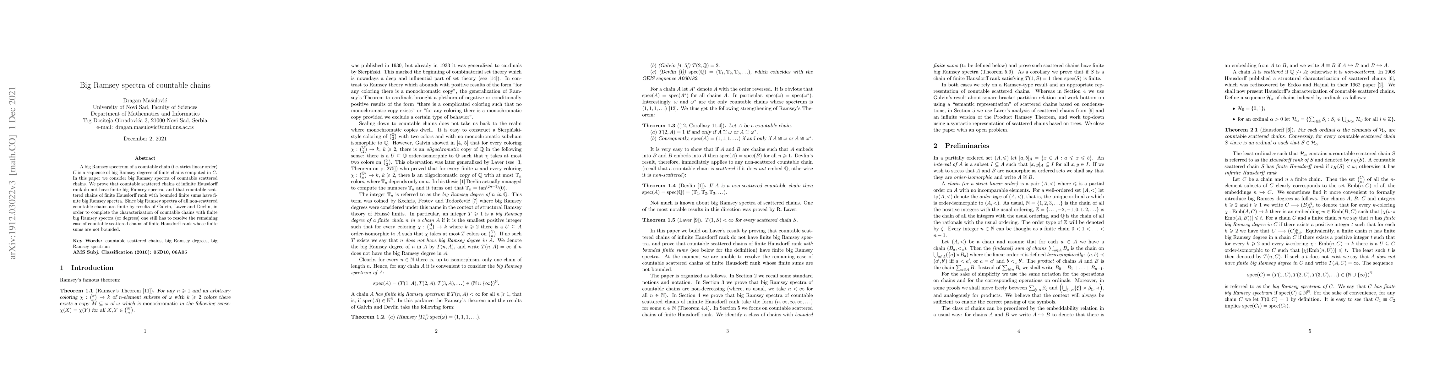 This paper investigates the big Ramsey spectra of countable scattered chains, proving that those with infinite Hausdorff rank lack finite spectra, while those with finite Hausdorff rank and bounded finite sums have finite spectra. The remaining case of scattered chains with finite Hausdorff rank and unbounded finite sums remains unresolved.