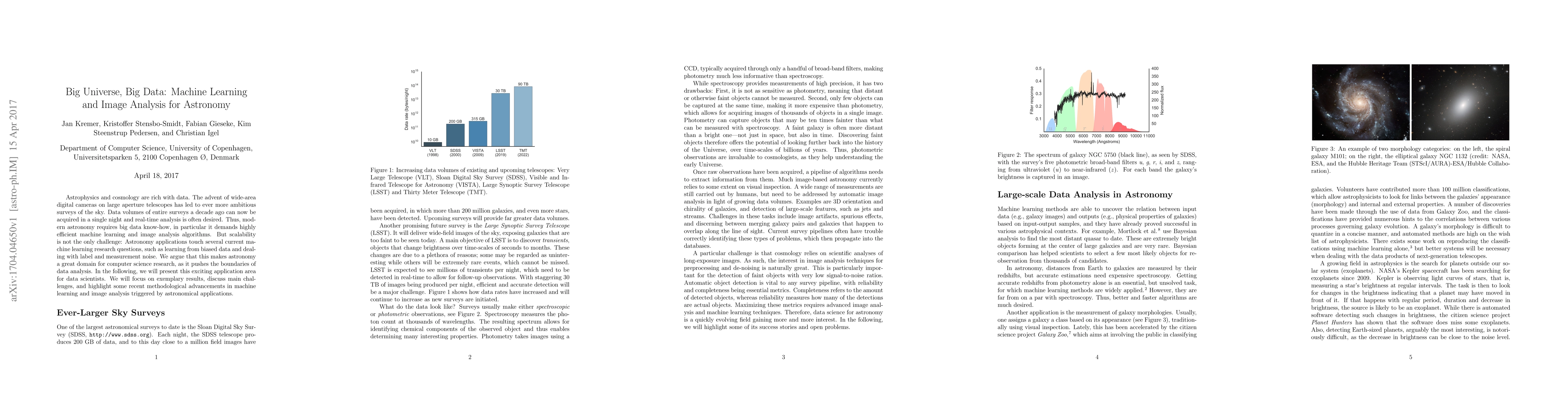 This paper explores the application of machine learning and image analysis in modern astronomy, driven by the exponential growth in data from large telescopes. It highlights the challenges of scalability, biased data, and noise, and argues that astronomy serves as a compelling domain for advancing computer science research in data analysis.