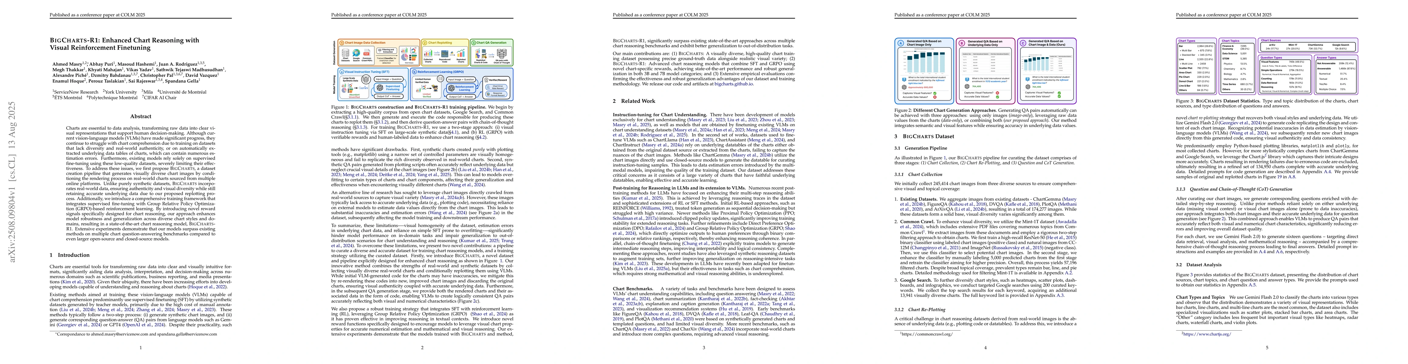 Charts are essential to data analysis, transforming raw data into clear visual representations that support human decision-making. Although current vision-language models (VLMs) have made significant progress, they continue to struggle with chart comprehension due to training on datasets that lack diversity and real-world authenticity, or on automatically extracted underlying data tables of charts, which can contain numerous estimation errors. Furthermore, existing models only rely on supervised fine-tuning using these low-quality datasets, severely limiting their effectiveness. To address these issues, we first propose BigCharts, a dataset creation pipeline that generates visually diverse chart images by conditioning the rendering process on real-world charts sourced from multiple online platforms. Unlike purely synthetic datasets, BigCharts incorporates real-world data, ensuring authenticity and visual diversity, while still retaining accurate underlying data due to our proposed replotting process. Additionally, we introduce a comprehensive training framework that integrates supervised fine-tuning with Group Relative Policy Optimization (GRPO)-based reinforcement learning. By introducing novel reward signals specifically designed for chart reasoning, our approach enhances model robustness and generalization across diverse chart styles and domains, resulting in a state-of-the-art chart reasoning model, BigCharts-R1. Extensive experiments demonstrate that our models surpass existing methods on multiple chart question-answering benchmarks compared to even larger open-source and closed-source models.