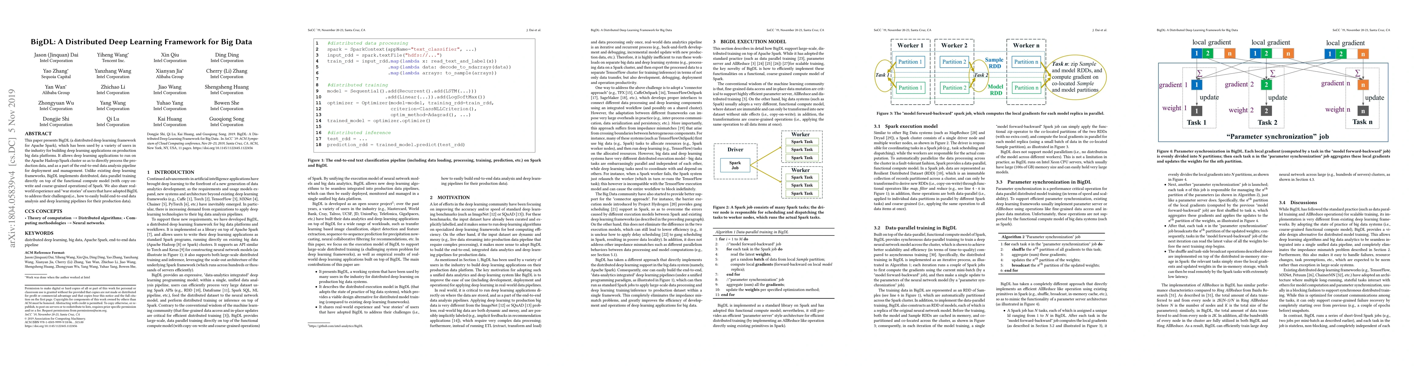 This paper presents BigDL (a distributed deep learning framework for Apache Spark), which has been used by a variety of users in the industry for building deep learning applications on production big data platforms. It allows deep learning applications to run on the Apache Hadoop/Spark cluster so as to directly process the production data, and as a part of the end-to-end data analysis pipeline for deployment and management. Unlike existing deep learning frameworks, BigDL implements distributed, data parallel training directly on top of the functional compute model (with copy-on-write and coarse-grained operations) of Spark. We also share real-world experience and "war stories" of users that have adopted BigDL to address their challenges(i.e., how to easily build end-to-end data analysis and deep learning pipelines for their production data).
