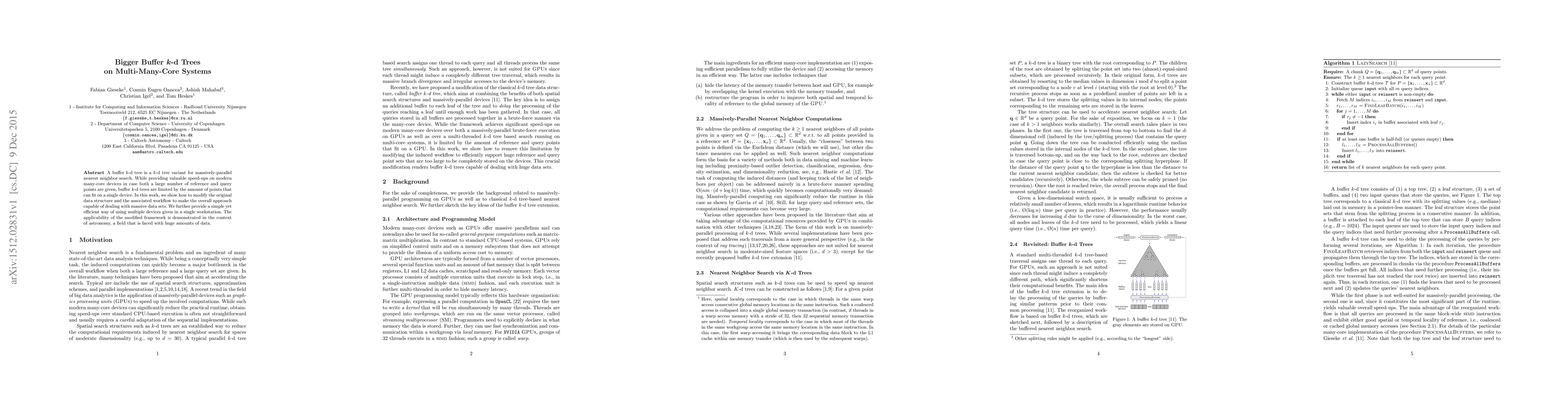 A buffer k-d tree is a k-d tree variant for massively-parallel nearest neighbor search. While providing valuable speed-ups on modern many-core devices in case both a large number of reference and query points are given, buffer k-d trees are limited by the amount of points that can fit on a single device. In this work, we show how to modify the original data structure and the associated workflow to make the overall approach capable of dealing with massive data sets. We further provide a simple yet efficient way of using multiple devices given in a single workstation. The applicability of the modified framework is demonstrated in the context of astronomy, a field that is faced with huge amounts of data.
