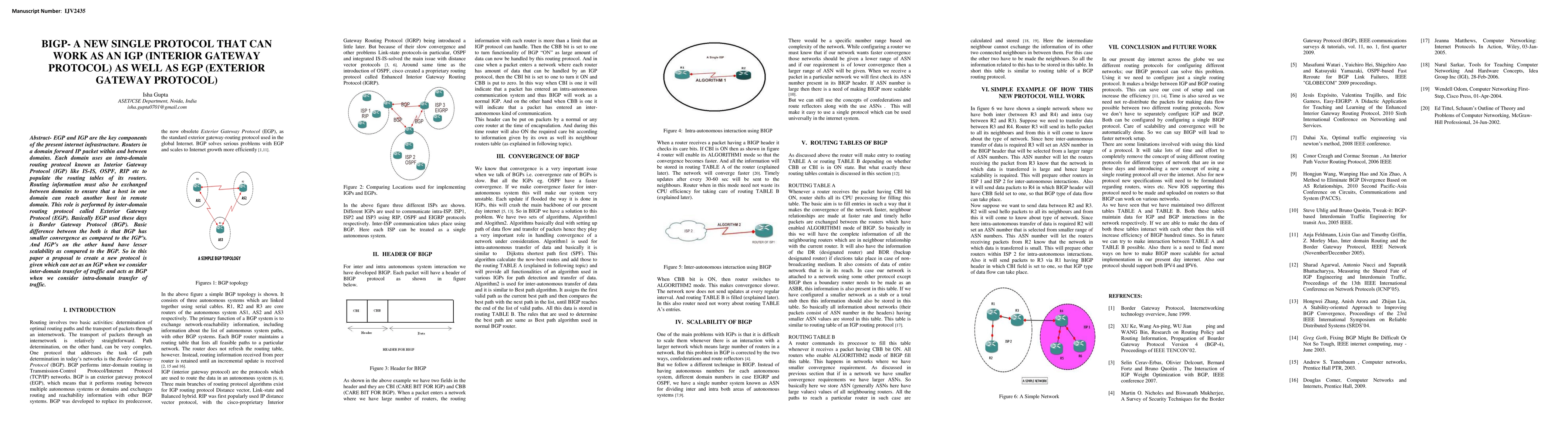 A new single protocol called BIGP is proposed that can work as both an Interior Gateway Protocol (IGP) and an Exterior Gateway Protocol (EGP), balancing convergence and scalability between intra-domain and inter-domain traffic transfer.