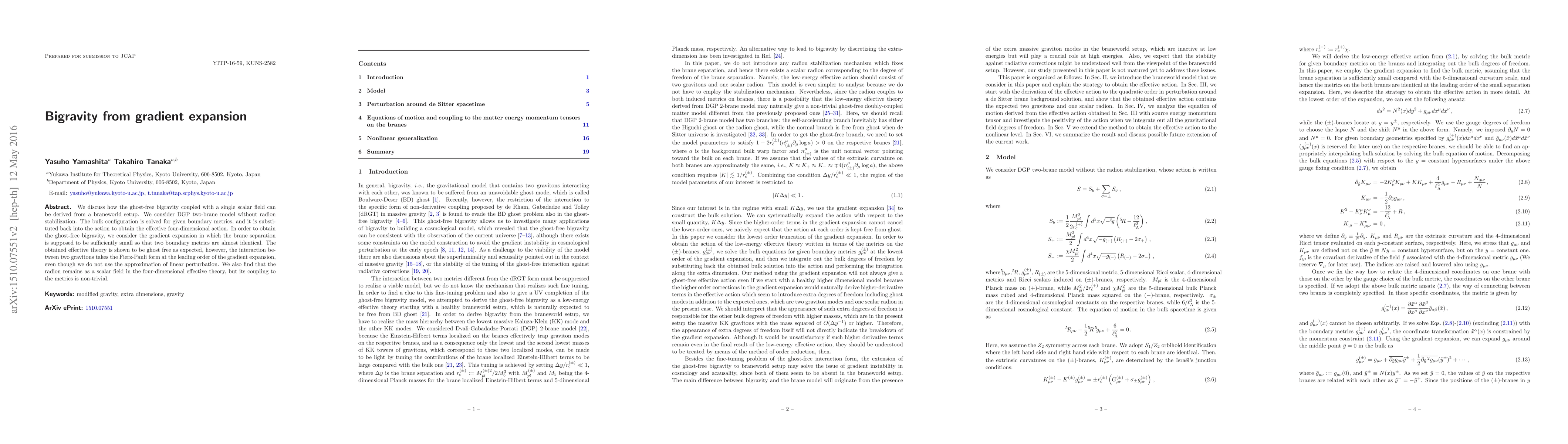 This paper derives ghost-free bigravity from a DGP braneworld model using a gradient expansion, showing that the effective theory retains the Fierz-Pauli form for graviton interactions while the radion remains as a non-trivially coupled scalar field.