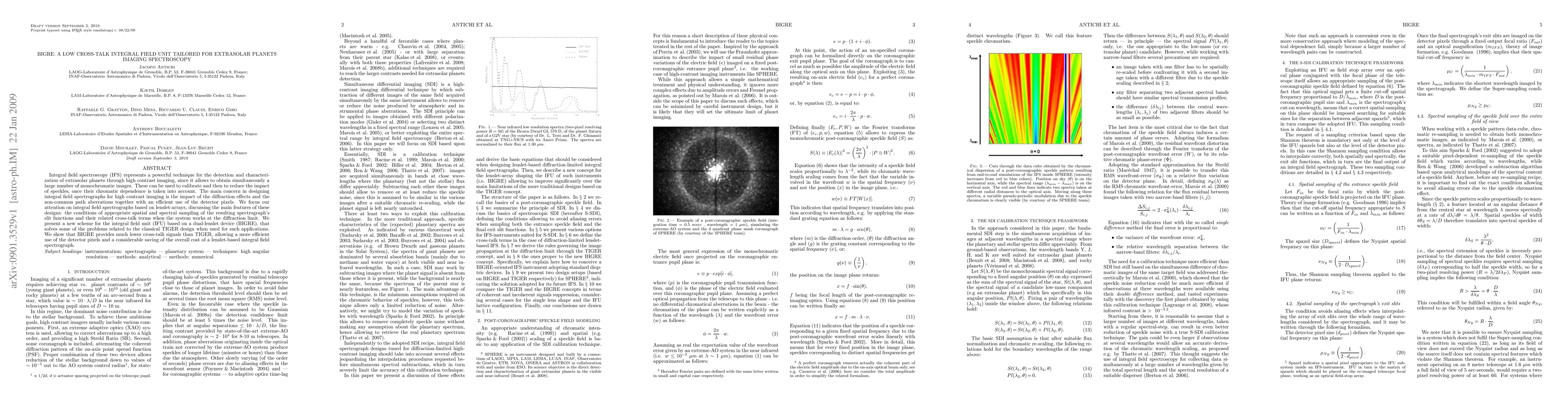 The paper introduces BIGRE, a novel dual-lenslet integral field unit (IFU) designed to minimize cross-talk for high-contrast imaging spectroscopy of extrasolar planets, offering lower cross-talk and more efficient detector use compared to the classical TIGER design.