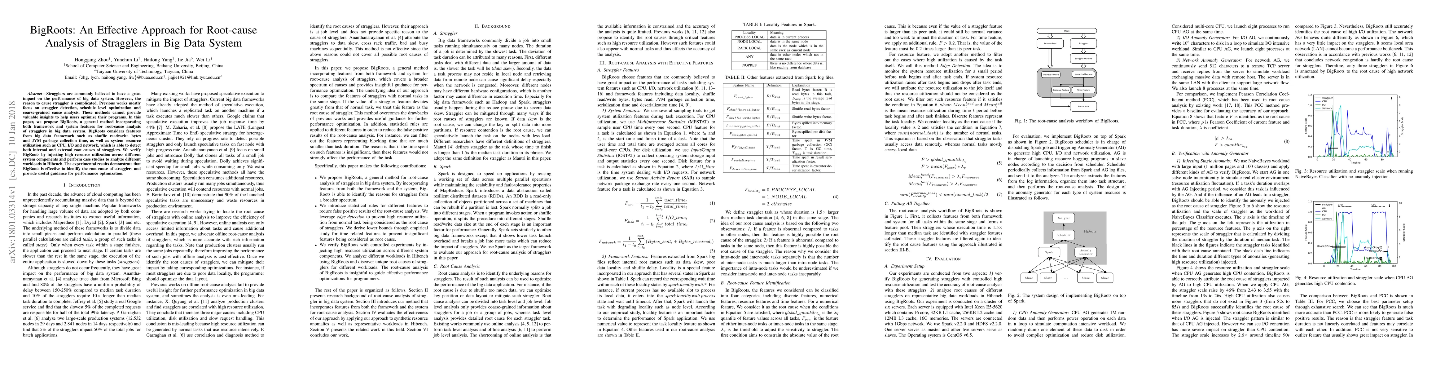 Researchers propose BigRoots, a method for root-cause analysis of stragglers in big data systems, identifying both internal and external causes of performance issues.
