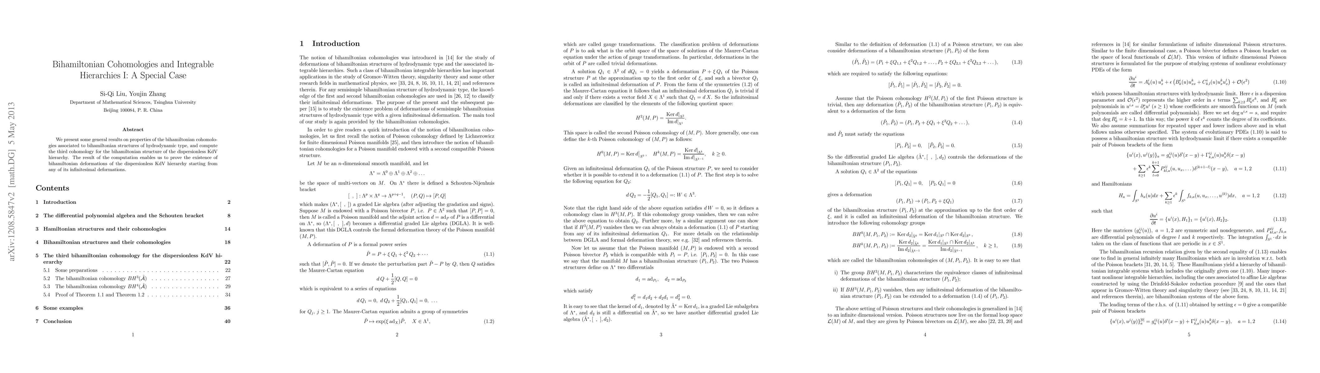 This paper investigates bihamiltonian cohomologies linked to hydrodynamic-type bihamiltonian structures and computes the third cohomology for the dispersionless KdV hierarchy, proving the existence of bihamiltonian deformations stemming from its infinitesimal deformations.