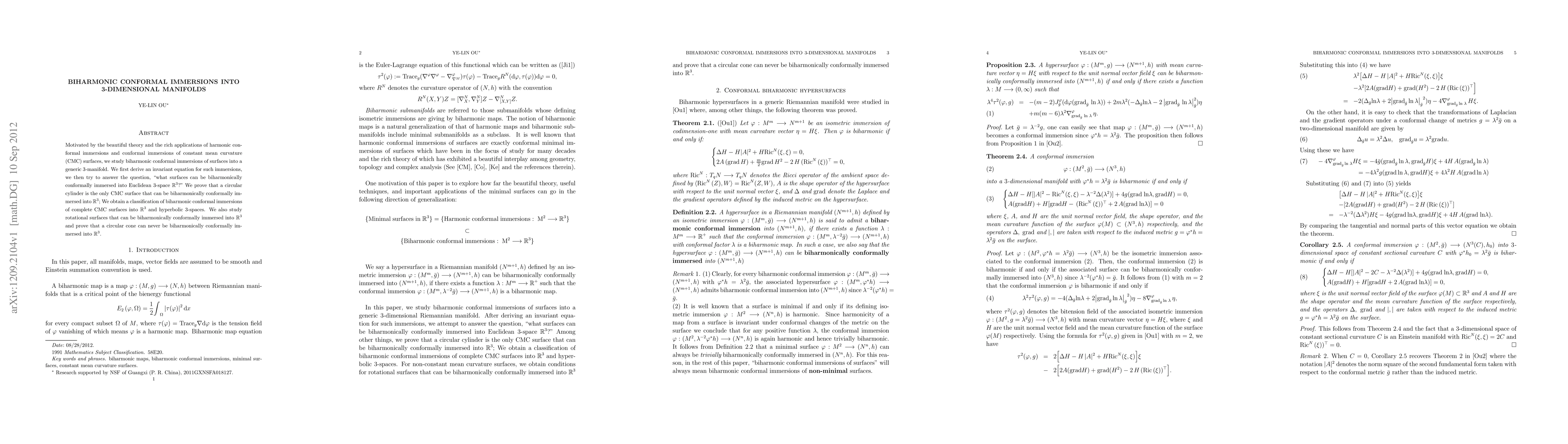 This paper investigates biharmonic conformal immersions of surfaces into 3-manifolds, deriving an invariant equation and classifying such immersions. It reveals that only circular cylinders can be biharmonically conformally immersed into Euclidean 3-space, while circular cones cannot achieve such immersions.