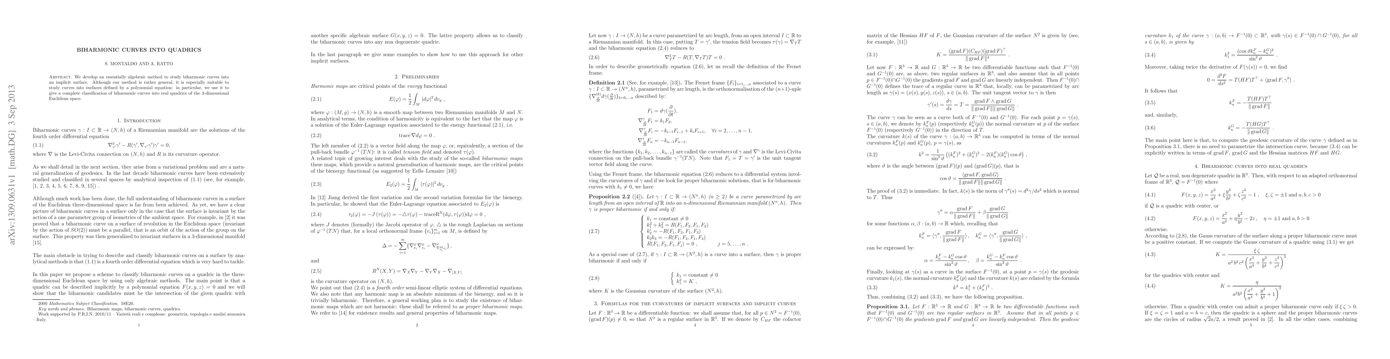 We develop an essentially algebraic method to study biharmonic curves into an implicit surface. Although our method is rather general, it is especially suitable to study curves into surfaces defined by a polynomial equation: in particular, we use it to give a complete classification of biharmonic curves into real quadrics of the 3-dimensional Euclidean space.
