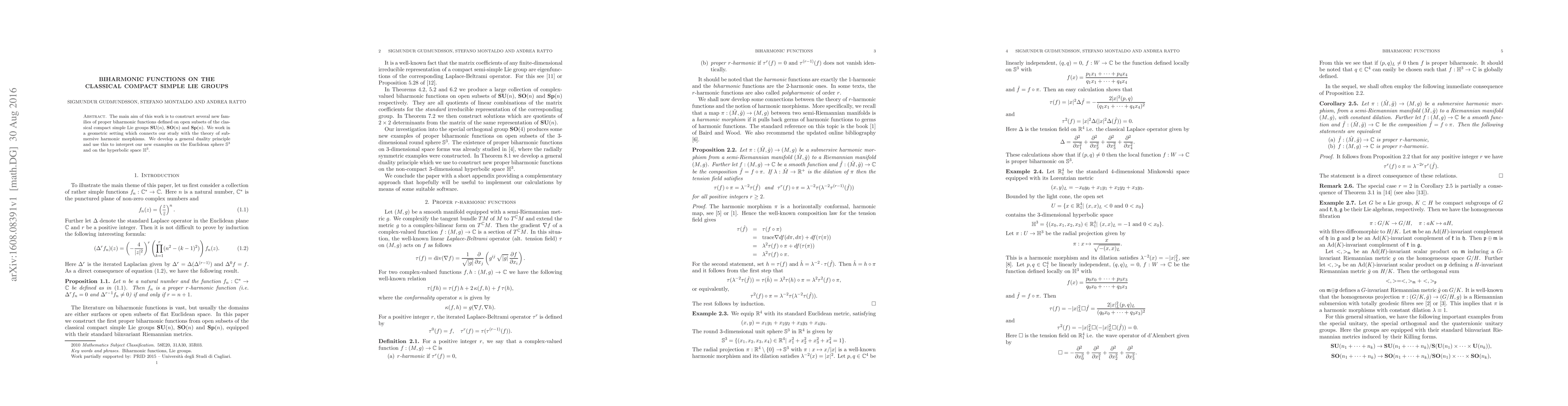 Researchers developed new families of biharmonic functions on compact Lie groups, connecting their study to submersive harmonic morphisms and providing interpretations on the Euclidean sphere and hyperbolic space.