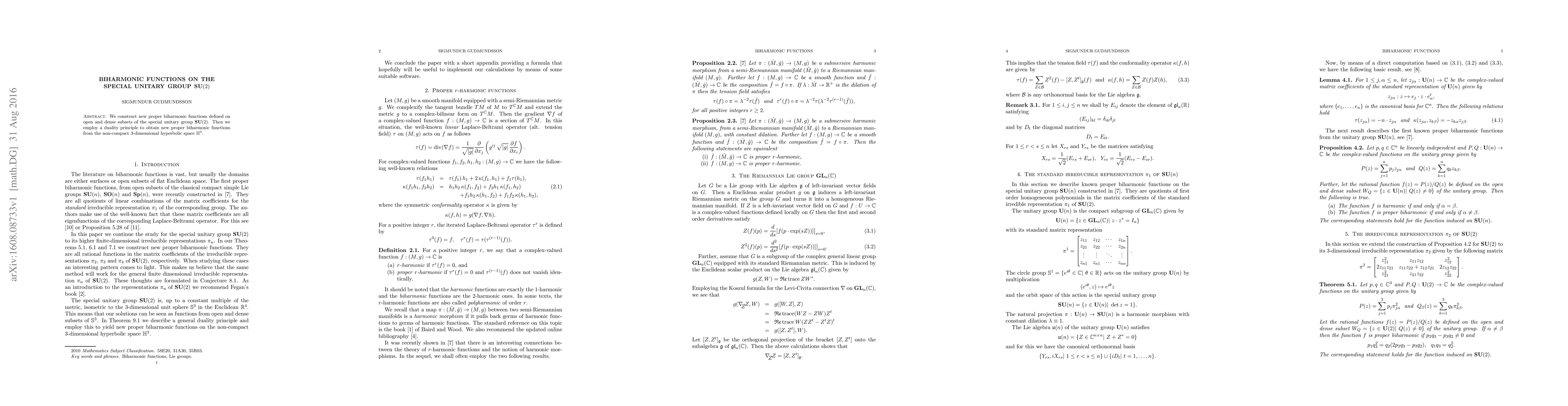 Summary: This paper constructs new proper biharmonic functions on open subsets of SU(2) and uses a duality principle to derive new biharmonic functions from the non-compact 3-dimensional hyperbolic space H^3.