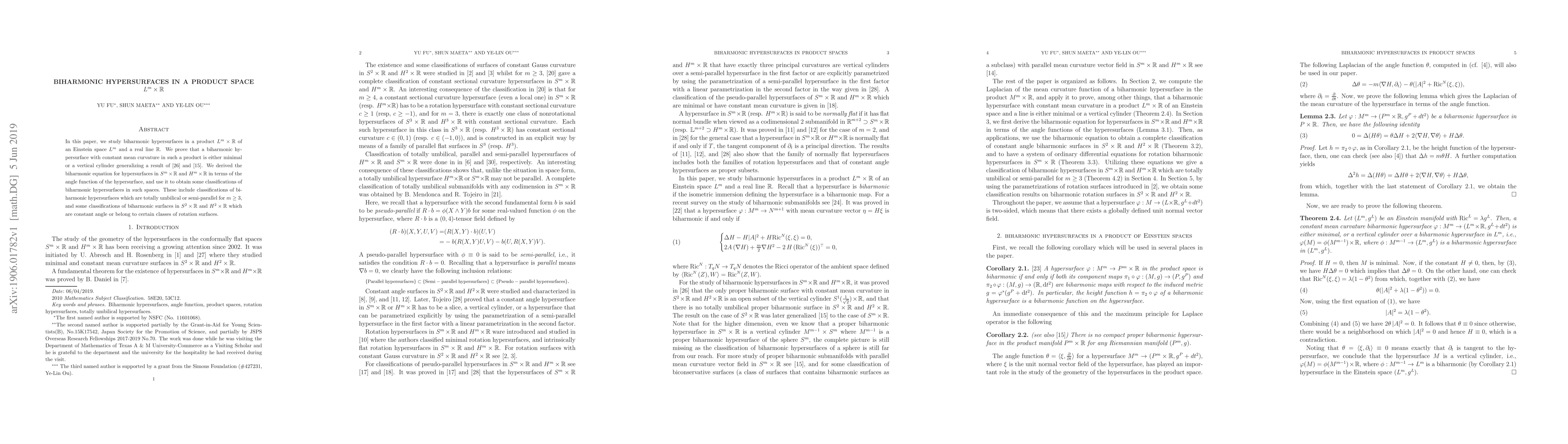 This paper studies biharmonic hypersurfaces in product spaces $L^m\times \mathbb{R}$, proving that biharmonic hypersurfaces with constant mean curvature are either minimal or vertical cylinders. It derives the biharmonic equation for such hypersurfaces and classifies them based on properties like being totally umbilical or semi-parallel.