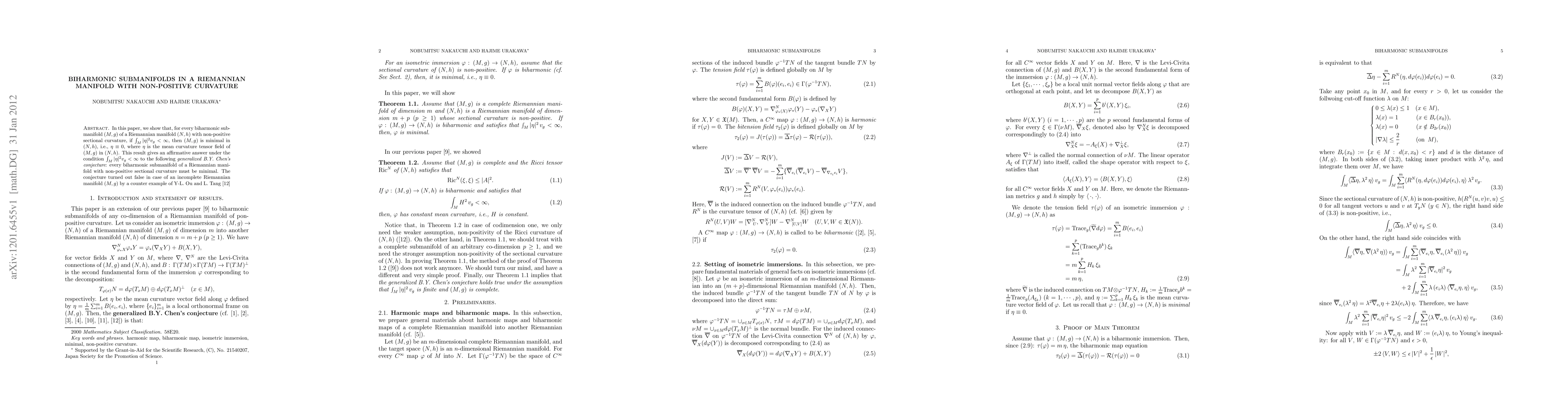 Summary: The paper proves that an isometric immersion of a complete Riemannian manifold into a manifold with non-positive curvature, where the norm of the mean curvature vector field is square integrable, is necessarily minimal. This provides a partial affirmative resolution to B. Y. Chen's conjecture.