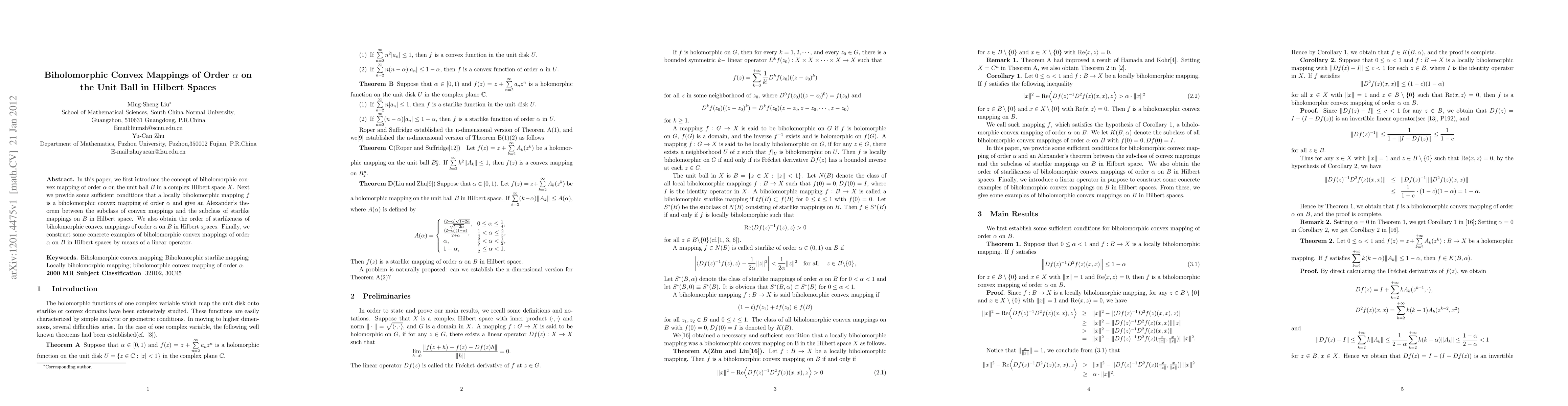 This paper introduces biholomorphic convex mappings of order alpha on the unit ball in complex Hilbert spaces, providing sufficient conditions for such mappings and establishing an Alexander's theorem relating convex and starlike mappings. It also determines the starlikeness order and constructs examples using linear operators.