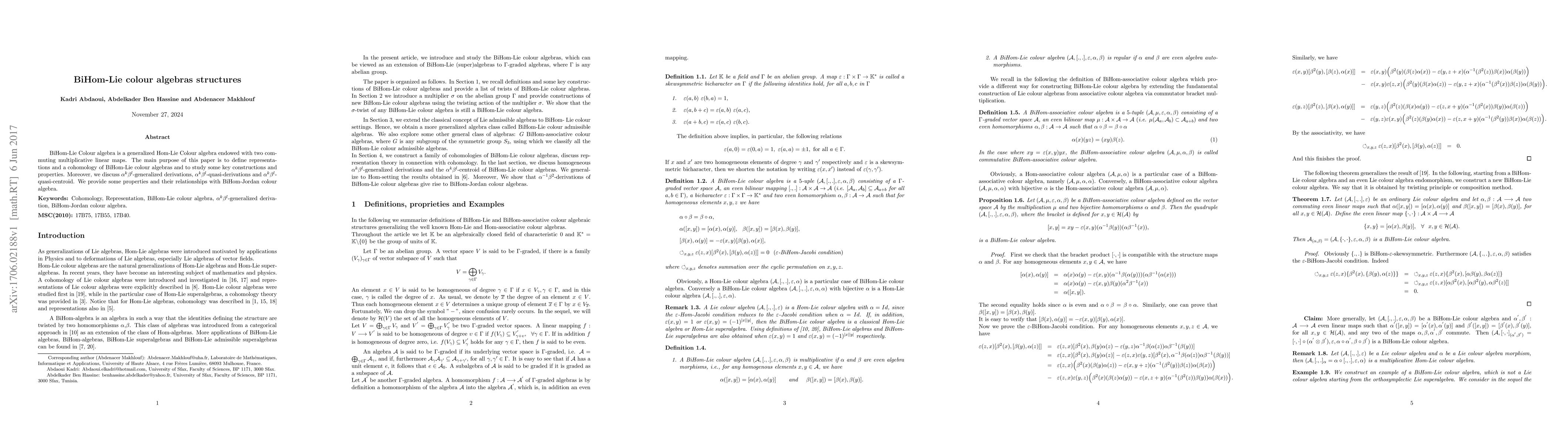 This paper defines BiHom-Lie colour algebras, a generalized version of Hom-Lie colour algebras with two commuting multiplicative linear maps. It explores representations, cohomology, and constructions, and discusses $\alpha^{k}\beta^l$-generalized derivations, quasi-derivations, and quasi-centroids, alongside their relations to BiHom-Jordan colour algebras.