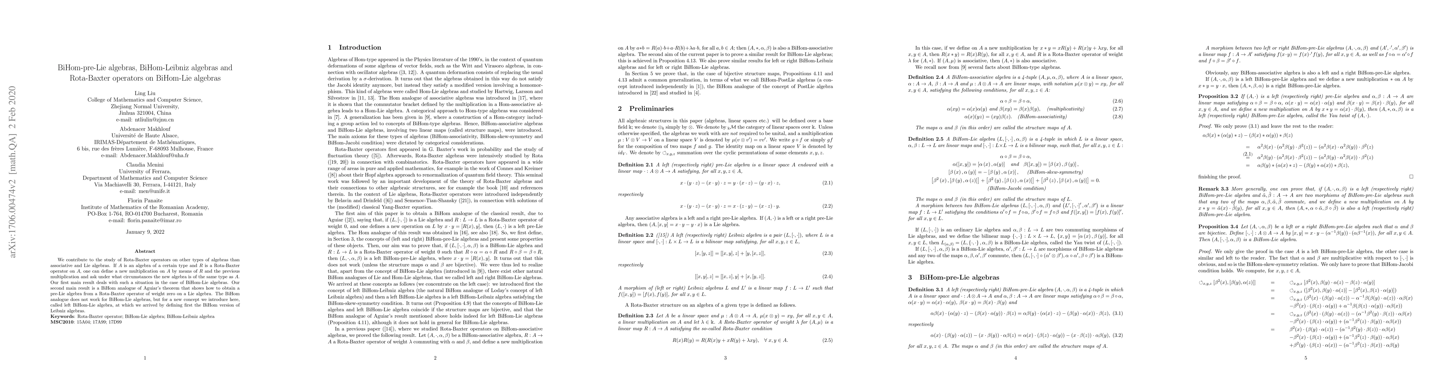 Summary: This paper explores Rota-Baxter operators in the context of BiHom-Lie algebras, introducing BiHom analogues of pre-Lie and Leibniz algebras, and investigating their properties.
