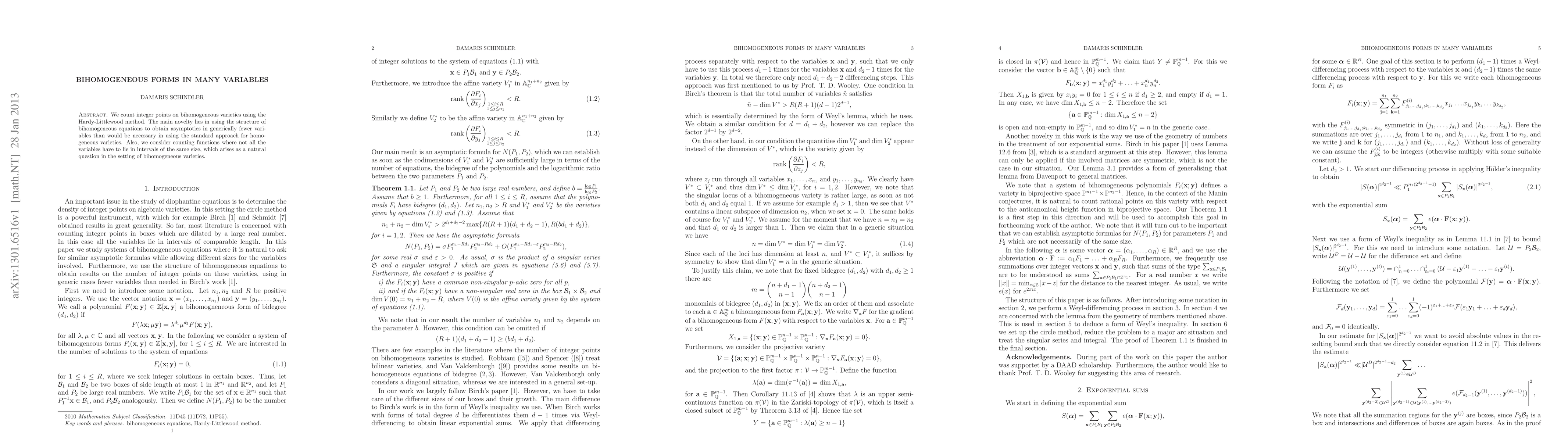 This paper employs the Hardy-Littlewood method to count integer points on bihomogeneous varieties, achieving asymptotics in fewer variables compared to the standard approach for homogeneous varieties. The study also addresses counting functions where variables do not necessarily lie in intervals of equal size, a unique aspect of bihomogeneous varieties.