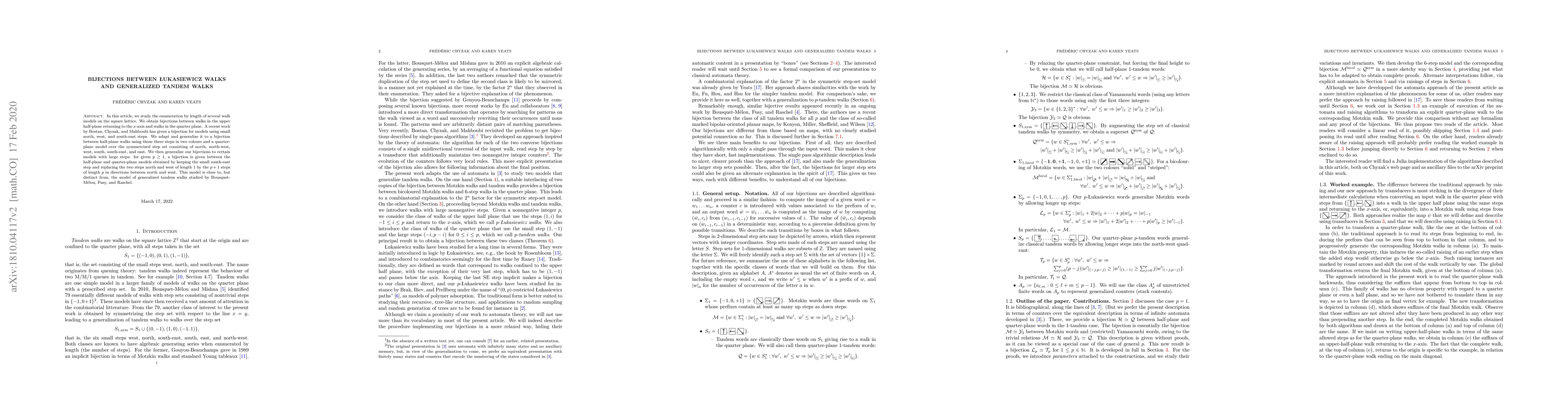 The paper introduces a systematic method for constructing bijections between Łukasiewicz walks and generalized tandem walks, generalizing previous results to include large steps and two-color models.
