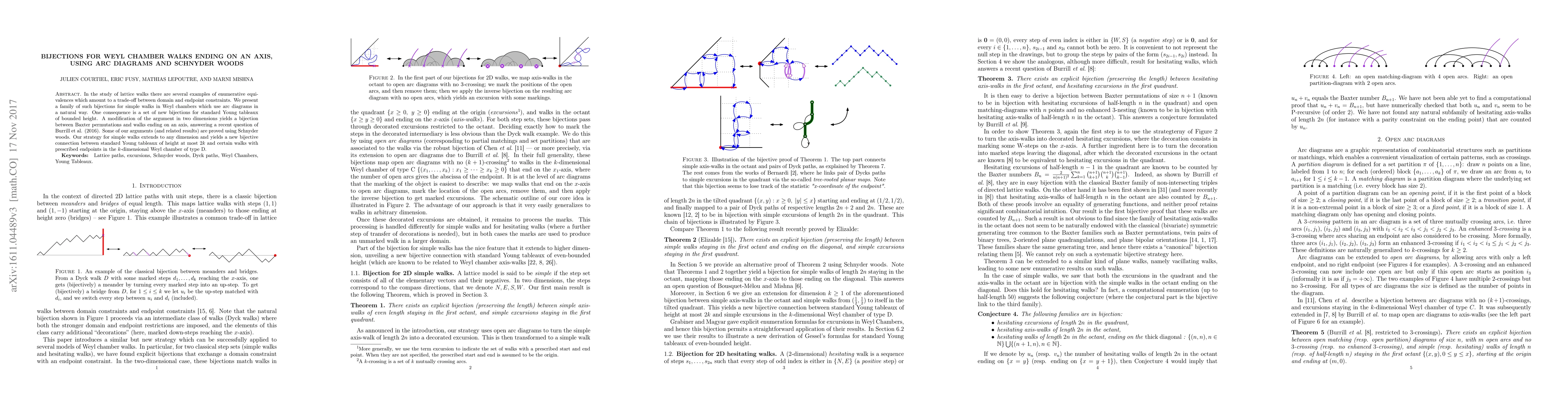 In the study of lattice walks there are several examples of enumerative equivalences which amount to a trade-off between domain and endpoint constraints. We present a family of such bijections for simple walks in Weyl chambers which use arc diagrams in a natural way. One consequence is a set of new bijections for standard Young tableaux of bounded height. A modification of the argument in two dimensions yields a bijection between Baxter permutations and walks ending on an axis, answering a recent question of Burrill et al. (2016). Some of our arguments (and related results) are proved using Schnyder woods. Our strategy for simple walks extends to any dimension and yields a new bijective connection between standard Young tableaux of height at most $2k$ and certain walks with prescribed endpoints in the $k$-dimensional Weyl chamber of type D.