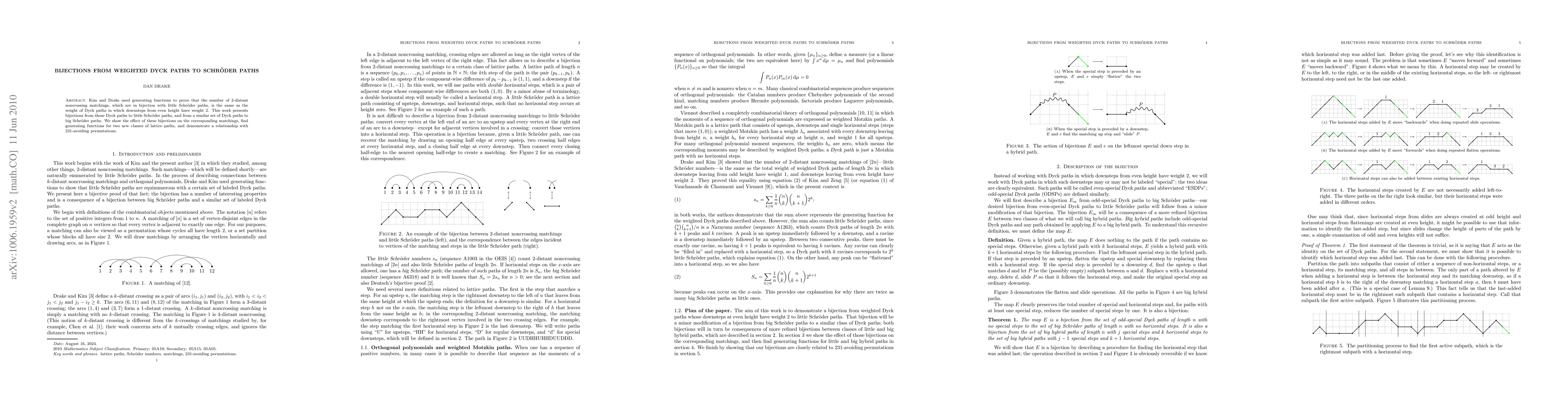 Kim and Drake used generating functions to prove that the number of 2-distant noncrossing matchings, which are in bijection with little Schroeder paths, is the same as the weight of Dyck paths in which downsteps from even height have weight 2. This work presents bijections from those Dyck paths to little Schroeder paths, and from a similar set of Dyck paths to big Schroeder paths. We show the effect of these bijections on the corresponding matchings, find generating functions for two new classes of lattice paths, and demonstrate a relationship with 231-avoiding permutations.
