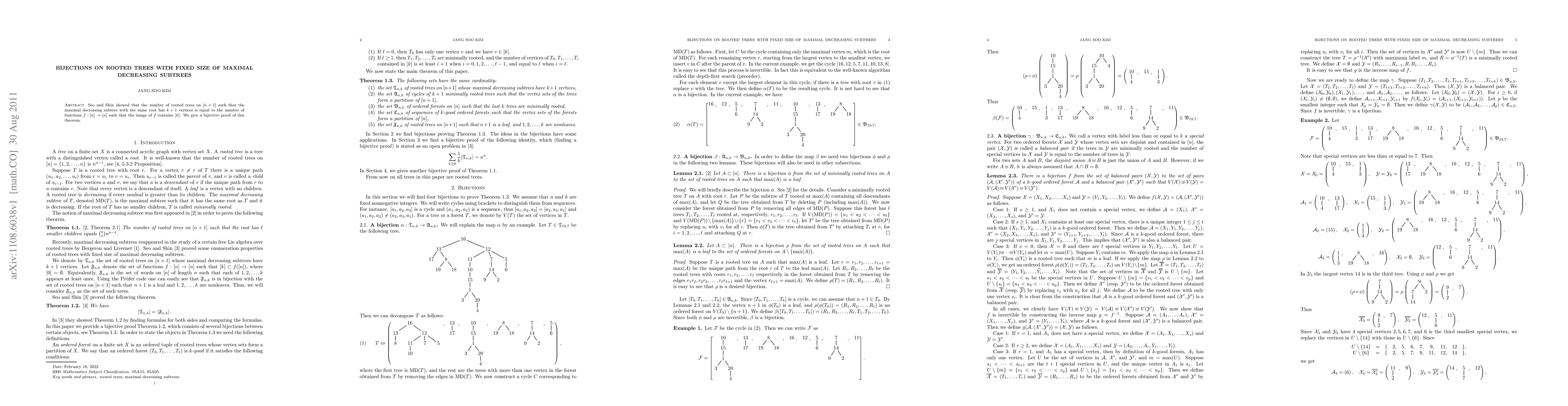 Seo and Shin's theorem on rooted trees with specific maximal decreasing subtrees is bijectively proven, establishing an equivalence between such trees and certain functions on sets. The bijection highlights the structural relationship between these two combinatorial objects.