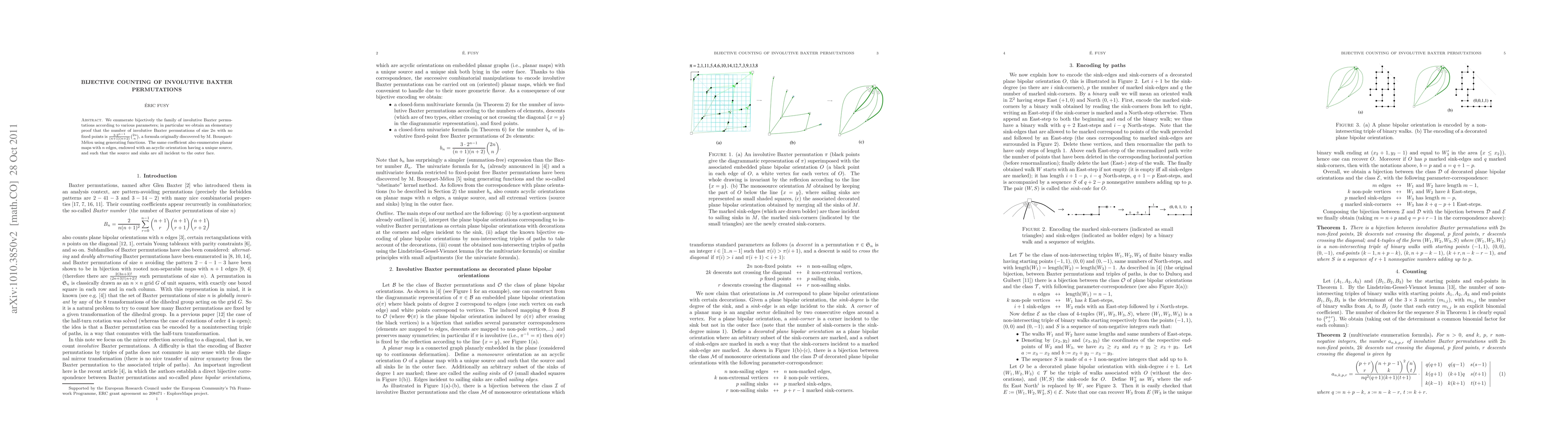 We enumerate bijectively the family of involutive Baxter permutations according to various parameters; in particular we obtain an elementary proof that the number of involutive Baxter permutations of size $2n$ with no fixed points is $\frac{3\cdot 2^{n-1}}{(n+1)(n+2)}\binom{2n}{n}$, a formula originally discovered by M. Bousquet-M\'elou using generating functions. The same coefficient also enumerates planar maps with $n$ edges, endowed with an acyclic orientation having a unique source, and such that the source and sinks are all incident to the outer face.