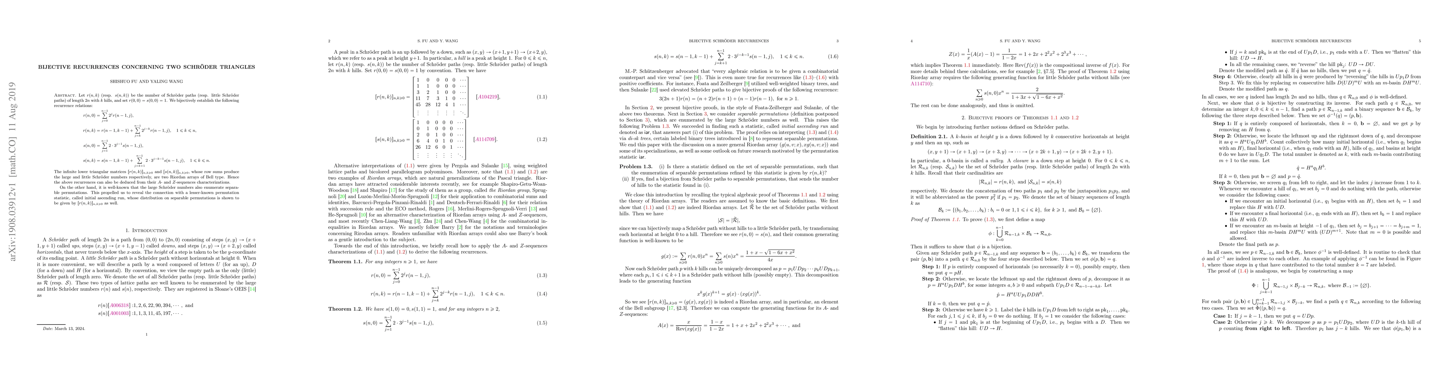 Let $r(n,k)$ (resp. $s(n,k)$) be the number of Schr\"oder paths (resp. little Schr\"oder paths) of length $2n$ with $k$ hills, and set $r(0,0)=s(0,0)=1$. We bijectively establish the following recurrence relations: \begin{align*} r(n,0)&=\sum\limits_{j=0}^{n-1}2^{j}r(n-1,j), r(n,k)&=r(n-1,k-1)+\sum\limits_{j=k}^{n-1}2^{j-k}r(n-1,j),\quad 1\le k\le n, s(n,0) &=\sum\limits_{j=1}^{n-1}2\cdot3^{j-1}s(n-1,j), s(n,k) &=s(n-1,k-1)+\sum\limits_{j=k+1}^{n-1}2\cdot3^{j-k-1}s(n-1,j),\quad 1\le k\le n. \end{align*} The infinite lower triangular matrices $[r(n,k)]_{n,k\ge 0}$ and $[s(n,k)]_{n,k\ge 0}$, whose row sums produce the large and little Schr\"oder numbers respectively, are two Riordan arrays of Bell type. Hence the above recurrences can also be deduced from their $A$- and $Z$-sequences characterizations. On the other hand, it is well-known that the large Schr\"oder numbers also enumerate separable permutations. This propelled us to reveal the connection with a lesser-known permutation statistic, called initial ascending run, whose distribution on separable permutations is shown to be given by $[r(n,k)]_{n,k\ge 0}$ as well.