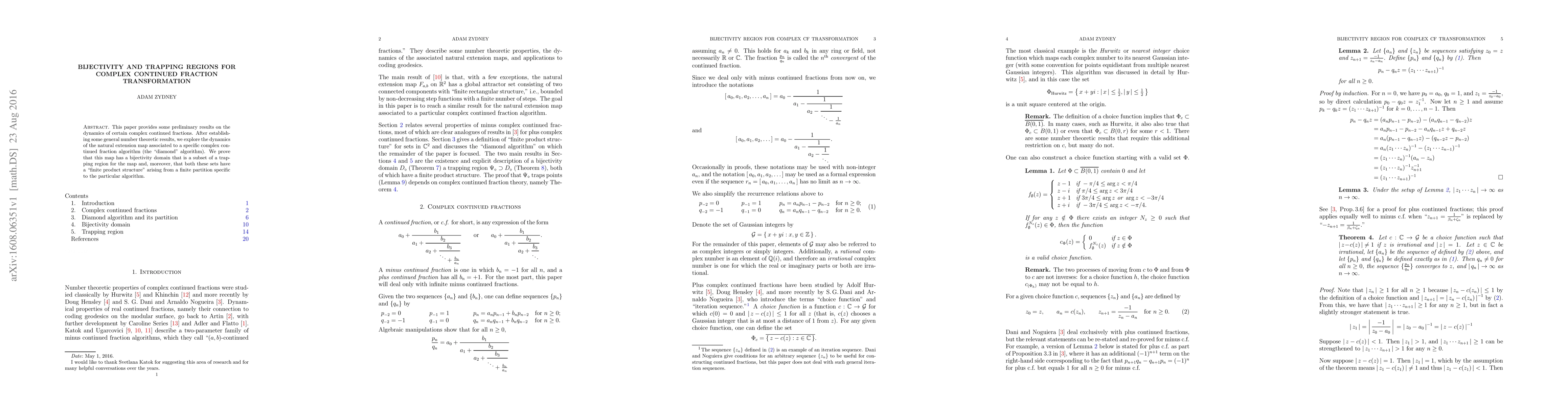 This paper provides some preliminary results on the dynamics of certain complex continued fractions. After establishing some general number theoretic results, we explore the dynamics of the natural extension map associated to a specific complex continued fraction algorithm (the "diamond" algorithm). We prove that this map has a bijectivity domain that is a subset of a trapping region for the map and, moreover, that both these sets have a "finite product structure" arising from a finite partition specific to the particular algorithm.