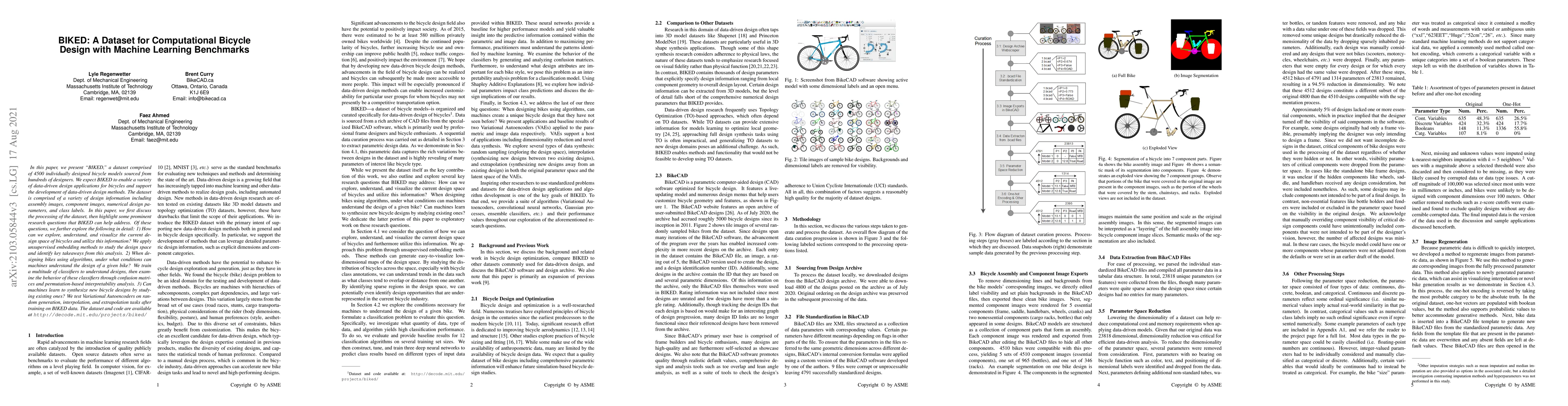This research introduces BIKED, a large dataset of 4,500 custom bicycle designs aimed at advancing data-driven bicycle design using machine learning. It explores how this dataset can identify market gaps, classify bicycle types, and generate new designs through various AI methods.