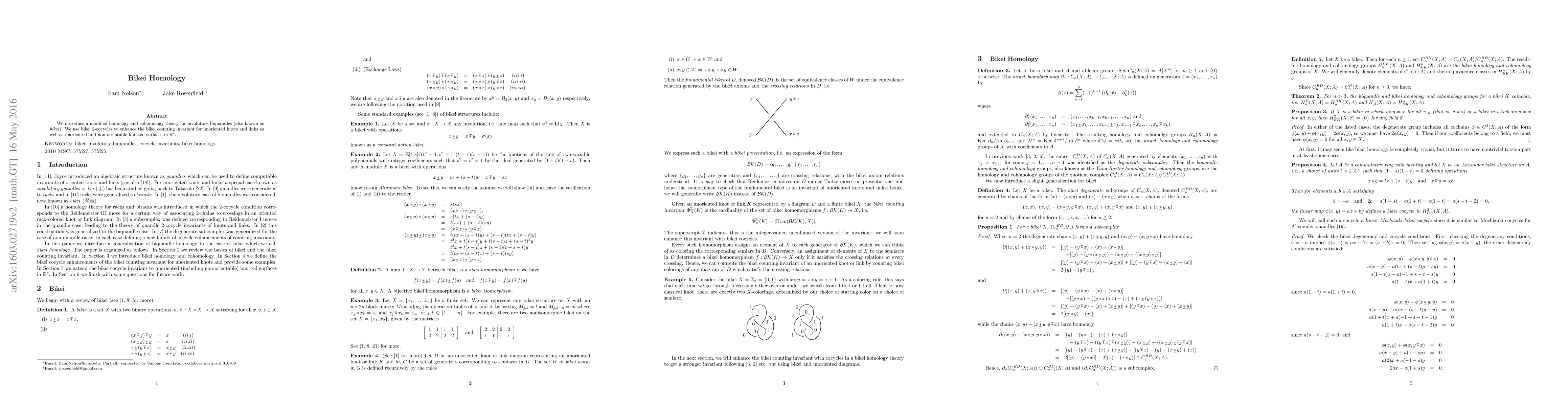 This paper presents a novel homology and cohomology theory for involutory biquandles (bikei), utilizing bikei 2-cocycles to refine the counting invariant for unoriented knots, links, and knotted surfaces in 4-dimensional space.