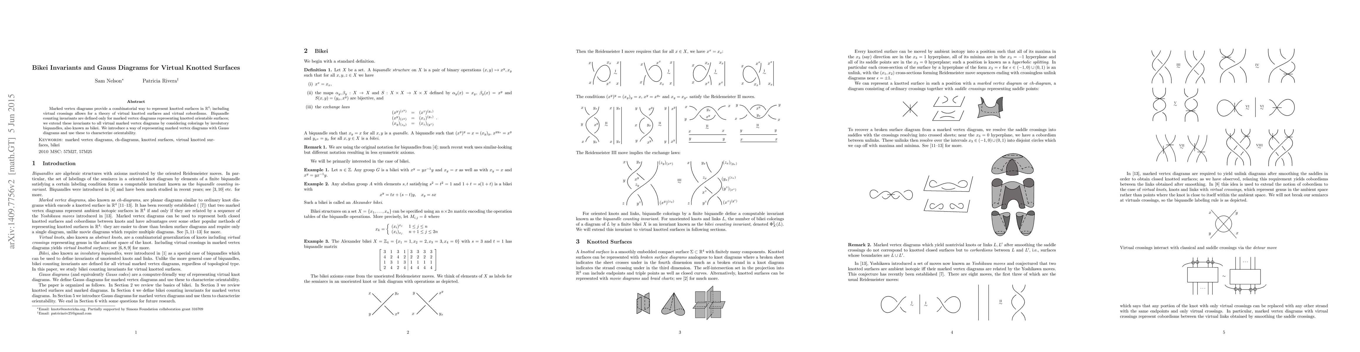 This paper extends biquandle counting invariants to virtual knotted surfaces using colorings by bikei, an involutory biquandle, and introduces Gauss diagrams to represent marked vertex diagrams and characterize orientability.